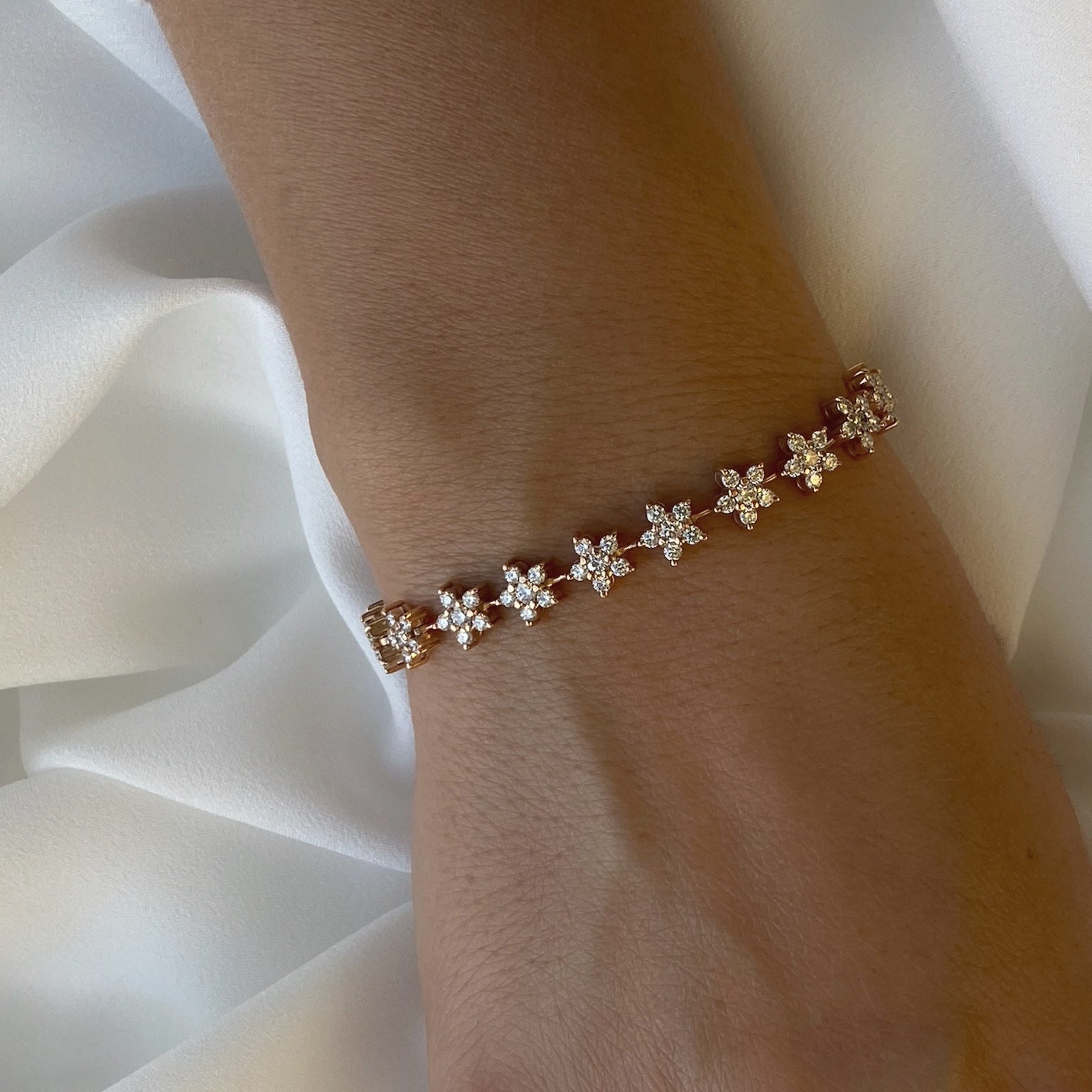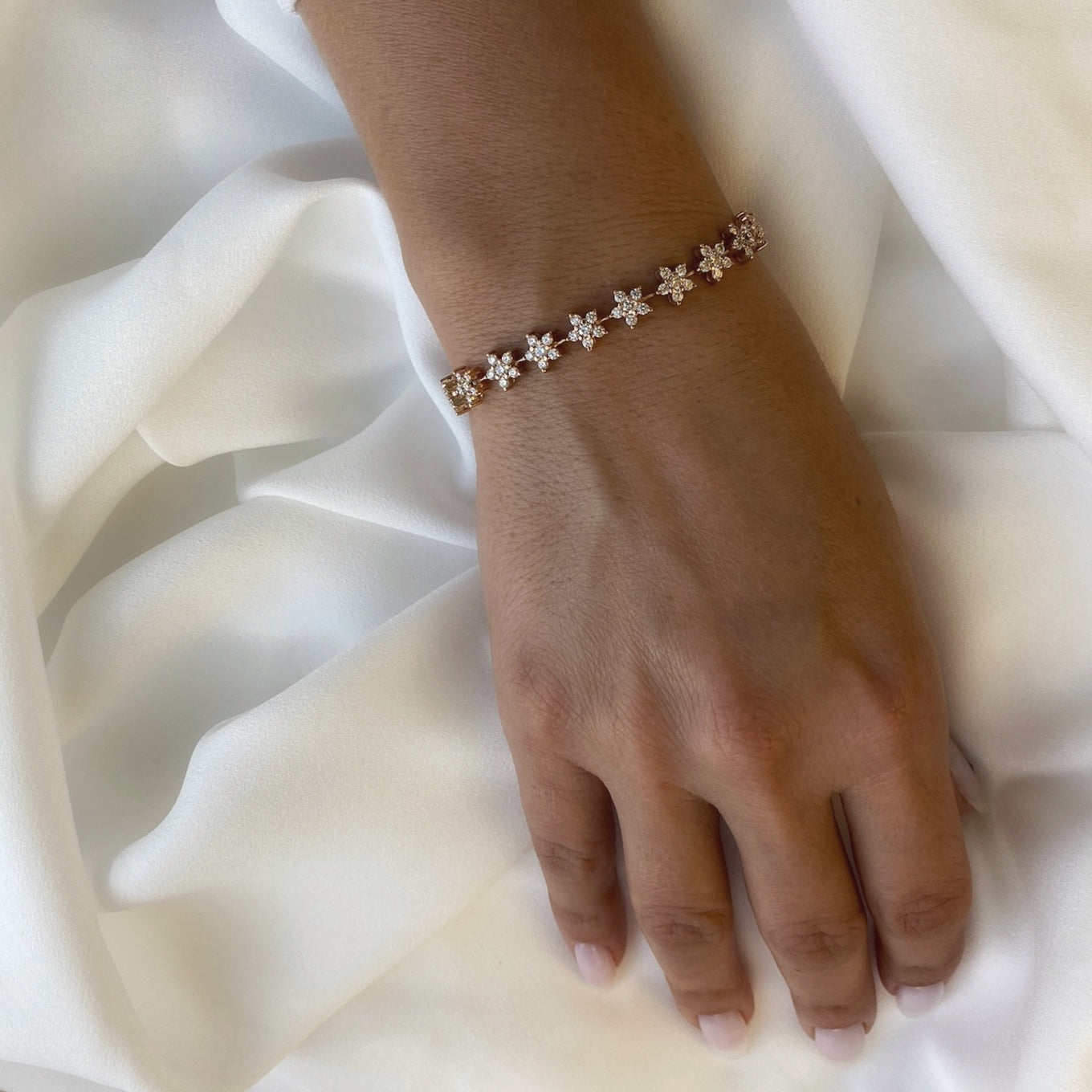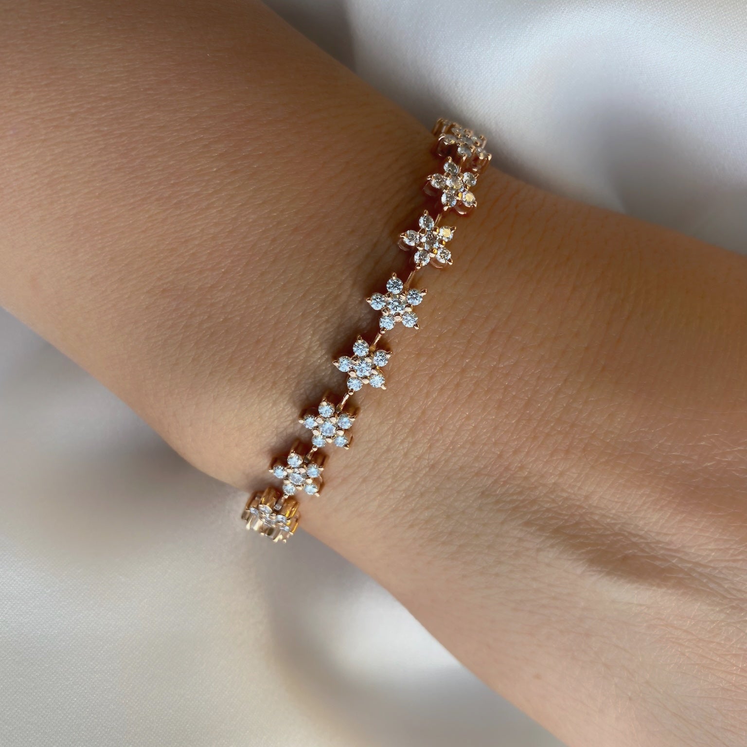 A Floral Tennis Bracelet, of bright Round Diamonds set in 18K Rose Gold. The price of natural diamonds is available upon request.