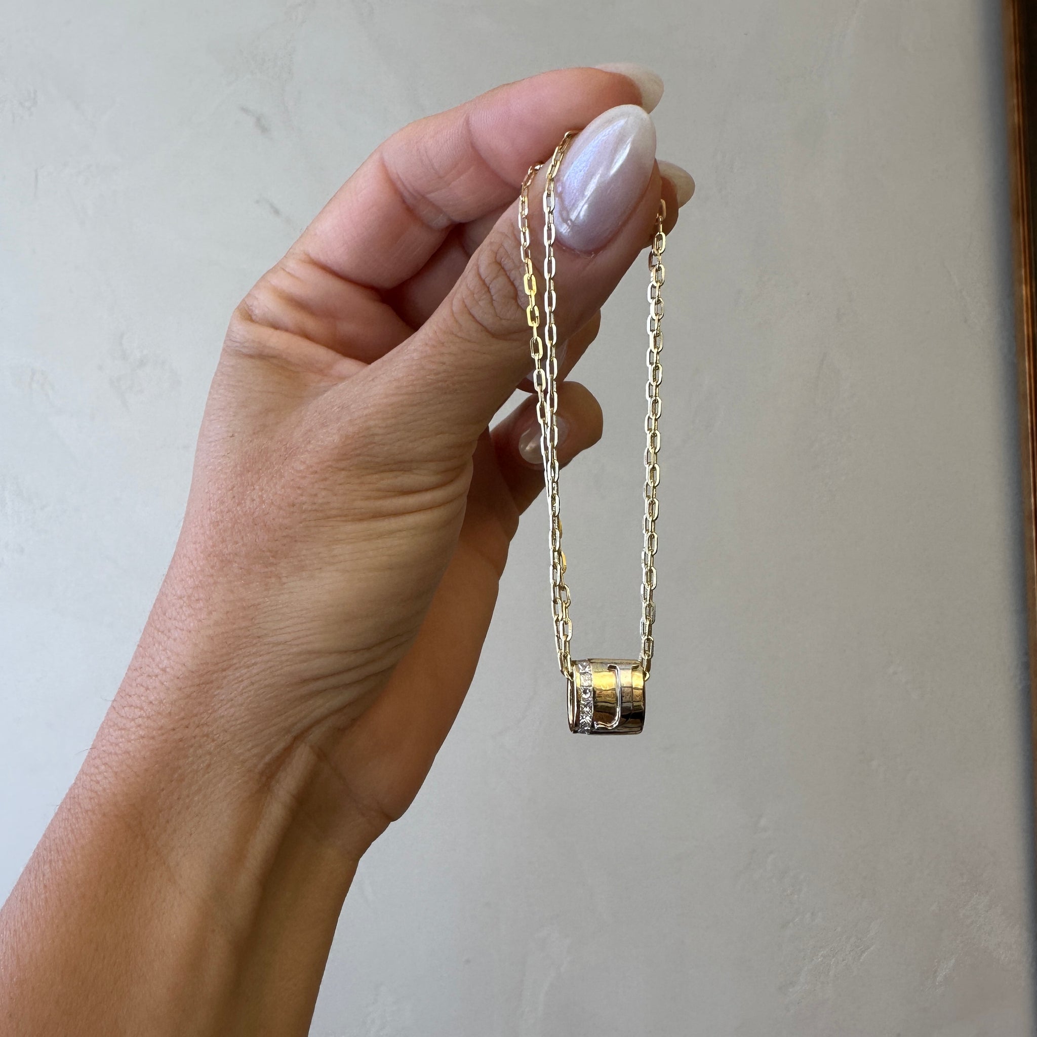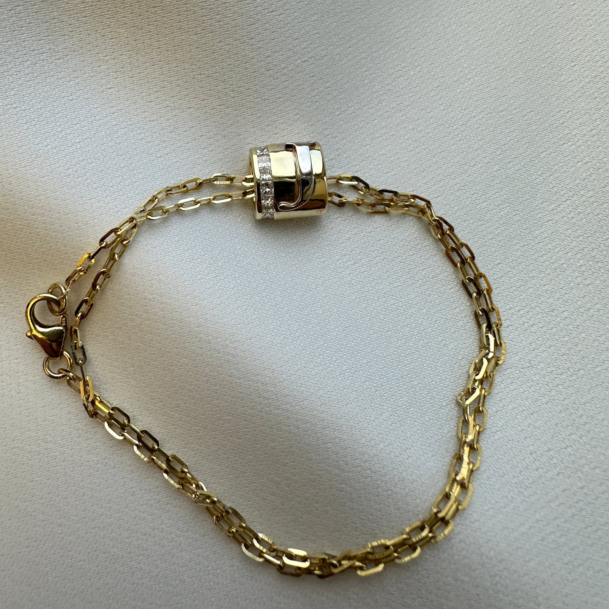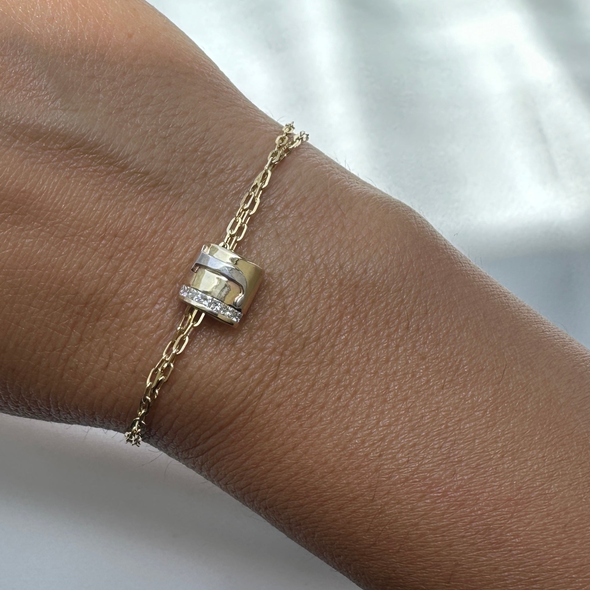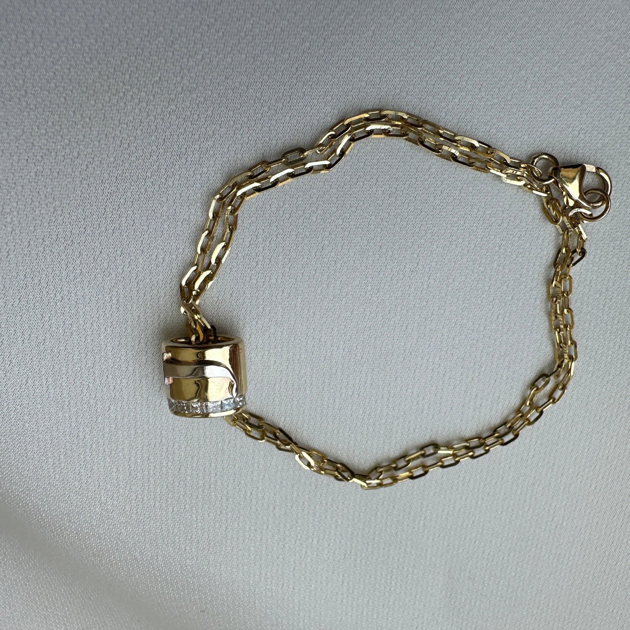 A round charm crafted with your favorite letter, combining two gold colors. Wear as a necklace or a bracelet, with or our without diamonds.