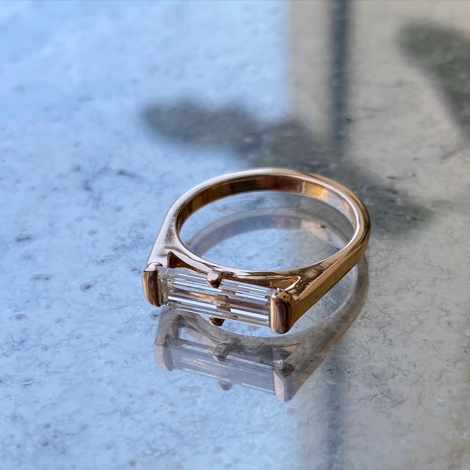 A minimalistic, modern ring of a stunning 1CT Baguette Diamond.