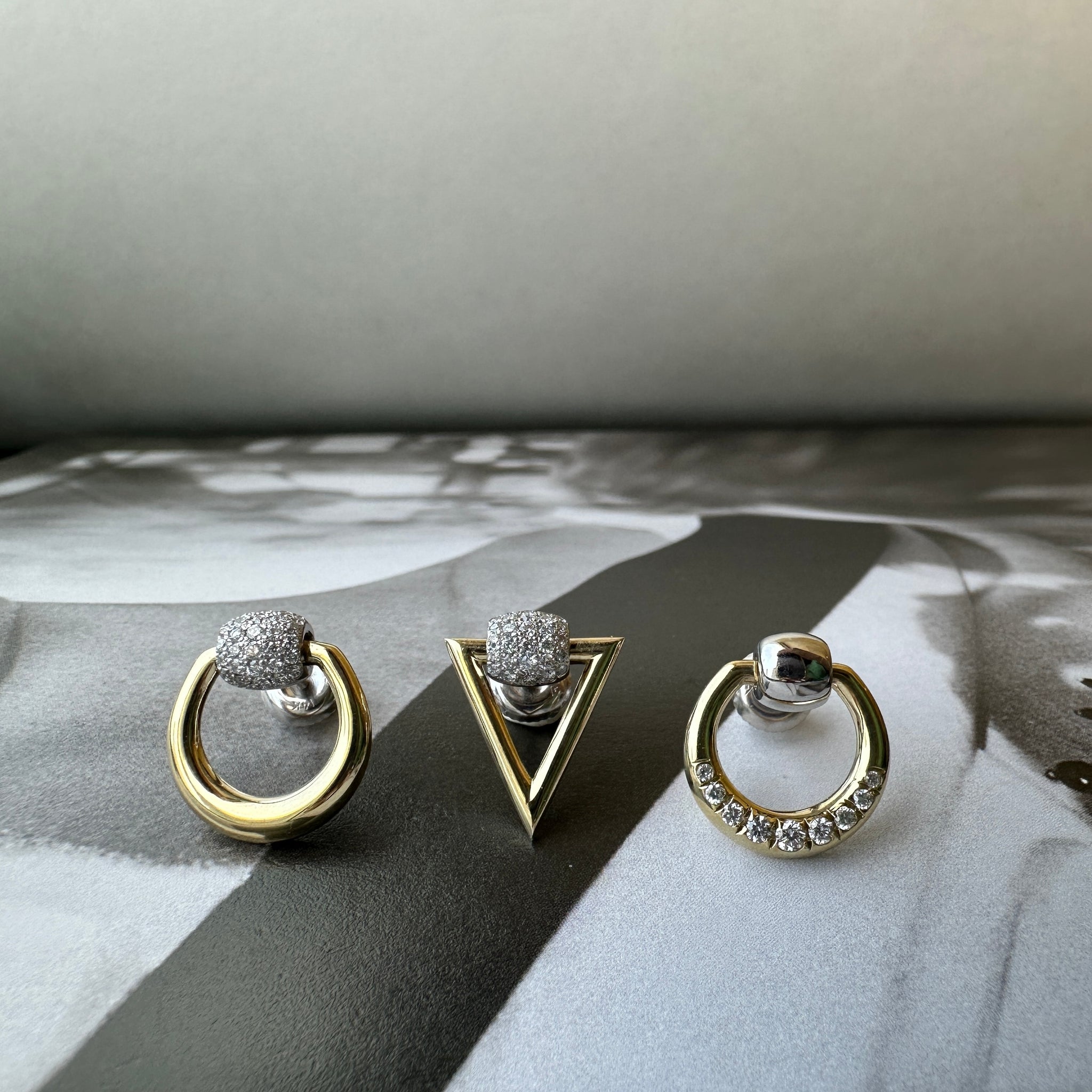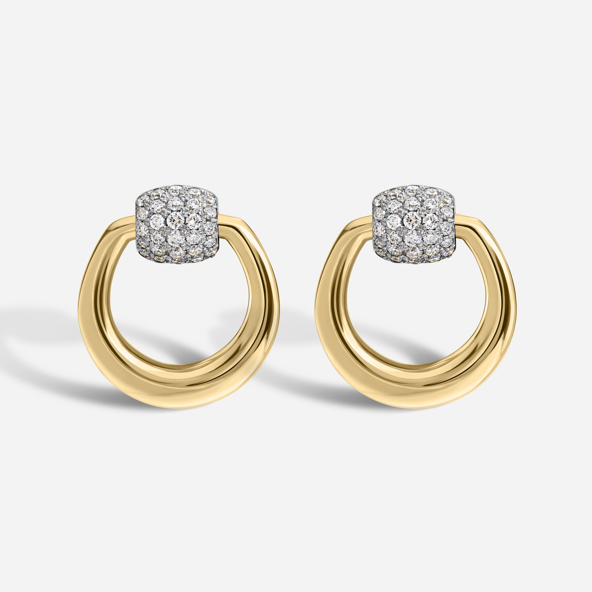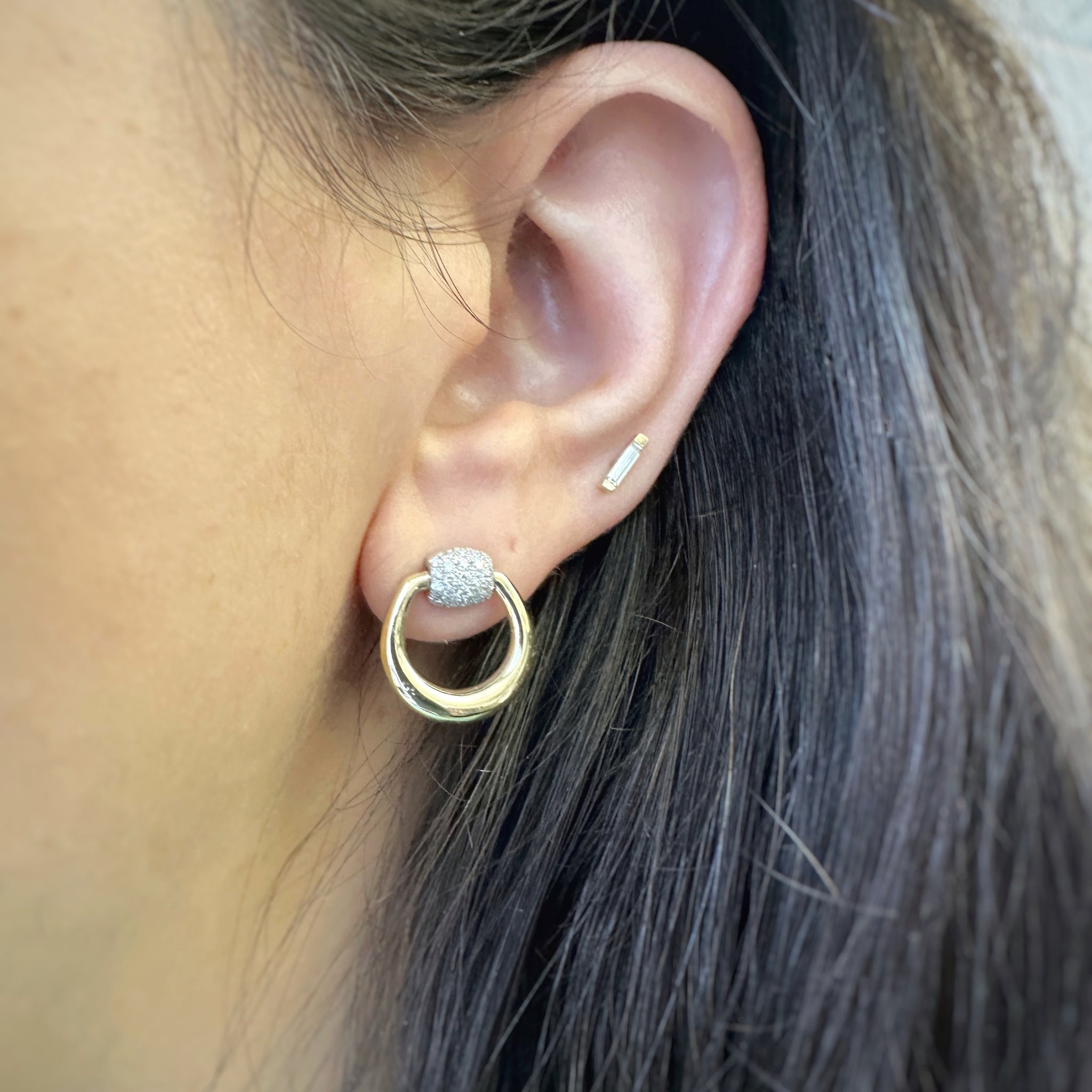 A sparkling diamond bead earring embracing a golden hoop element — unique and elegant.