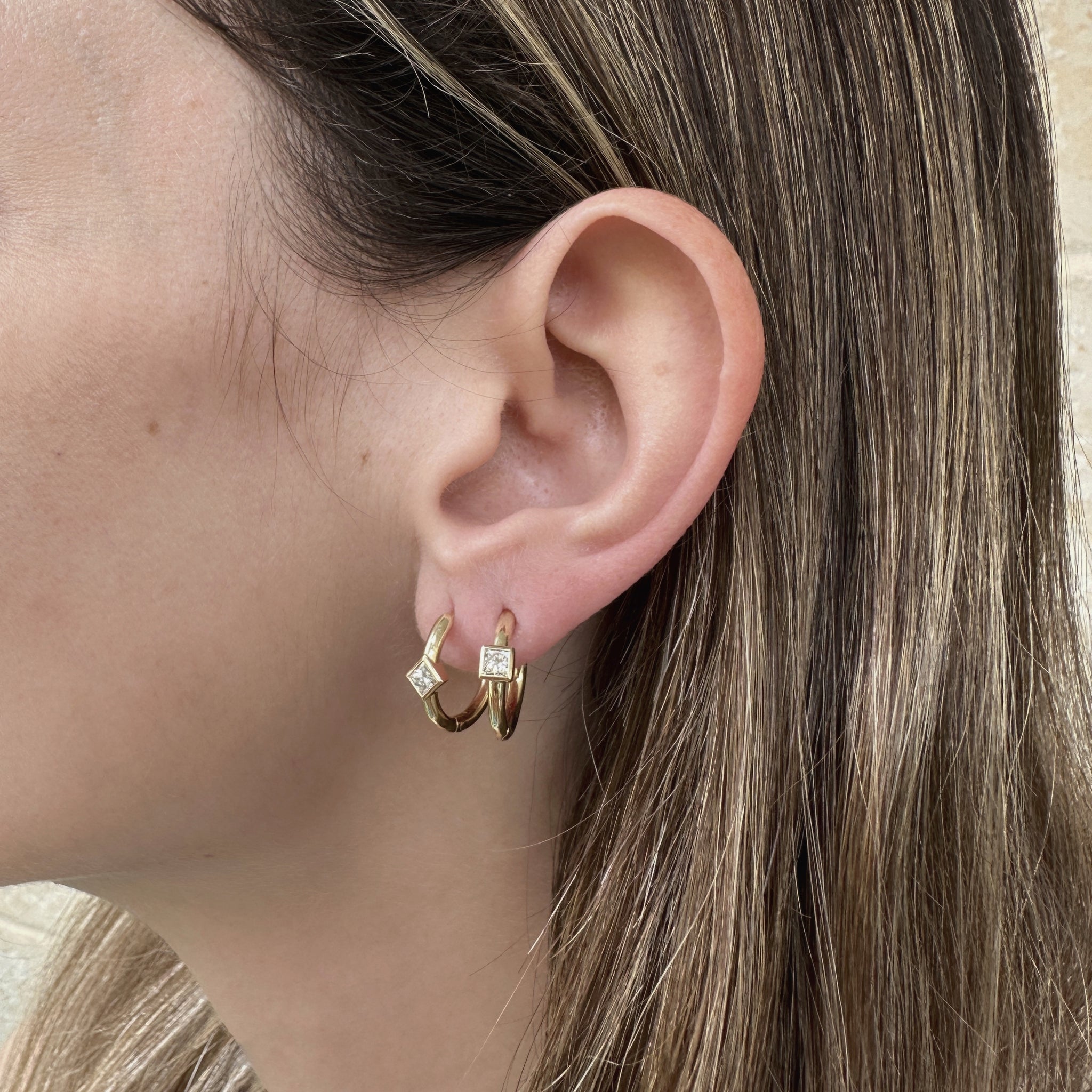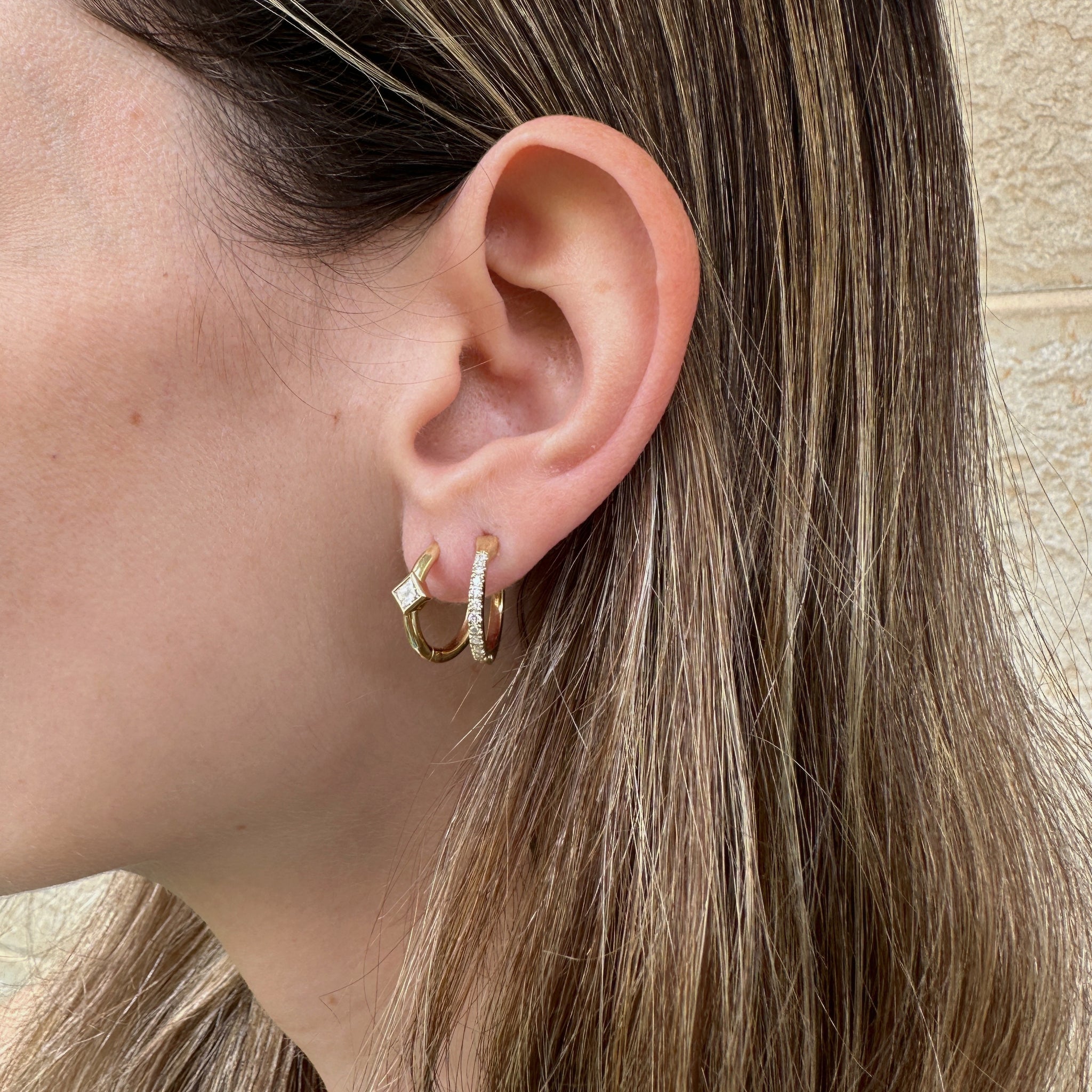 Choose your hoop! A perfect size Hoop Earrings, set with a Princess Cut Diamond in a gold frame. We highly recommend to mix and match with other diamond shapes.