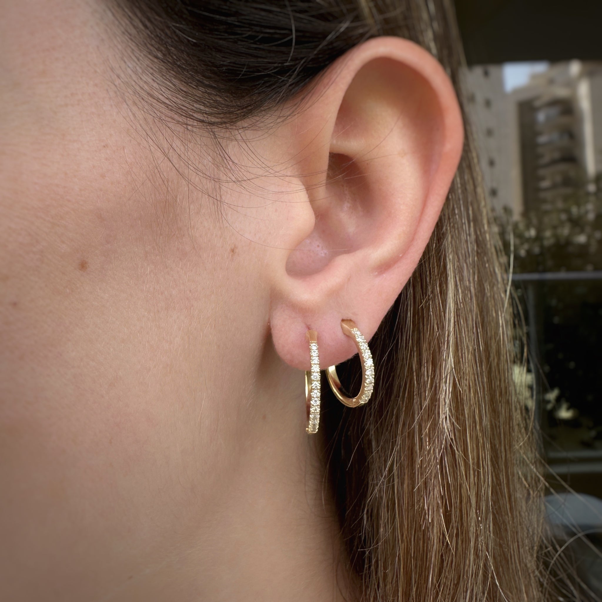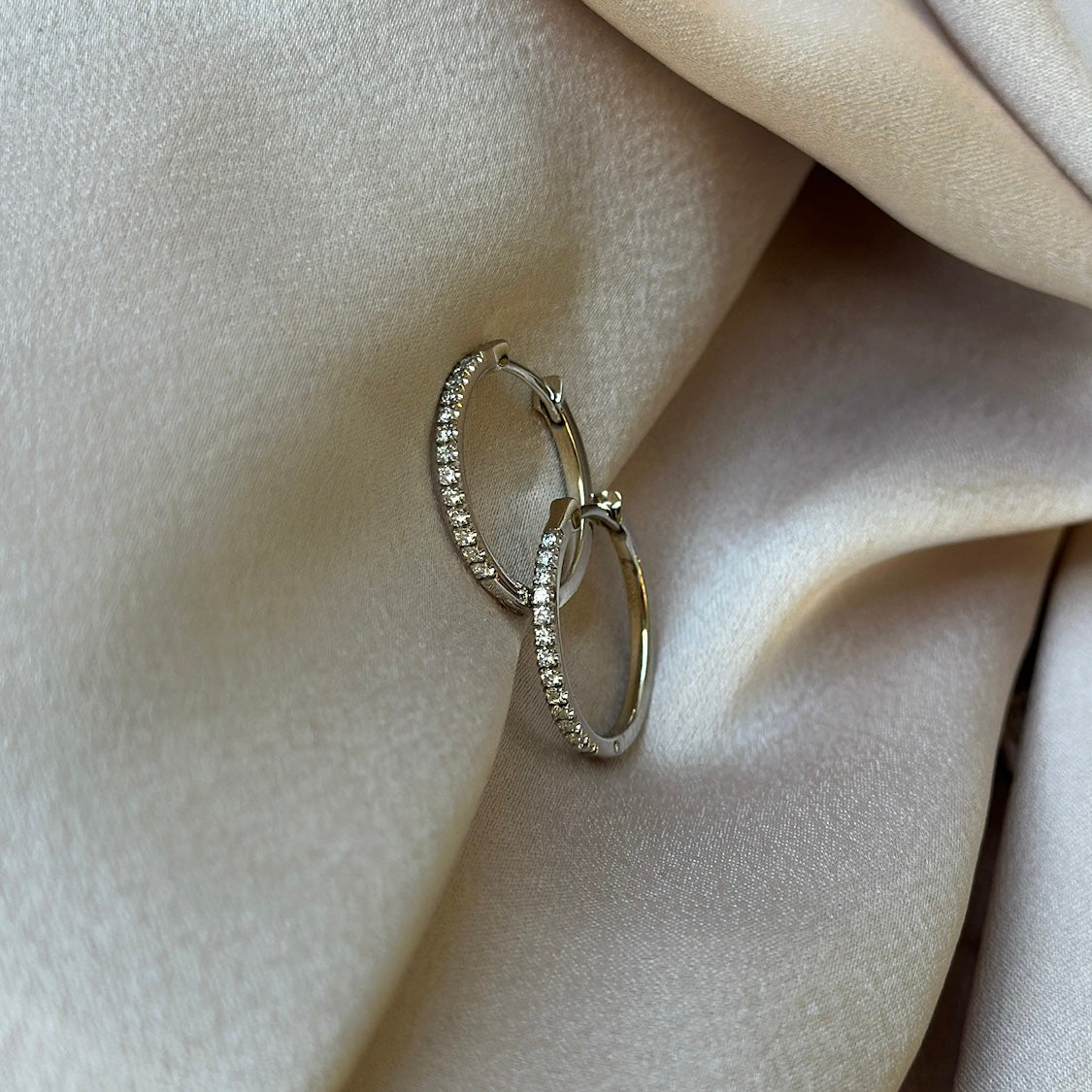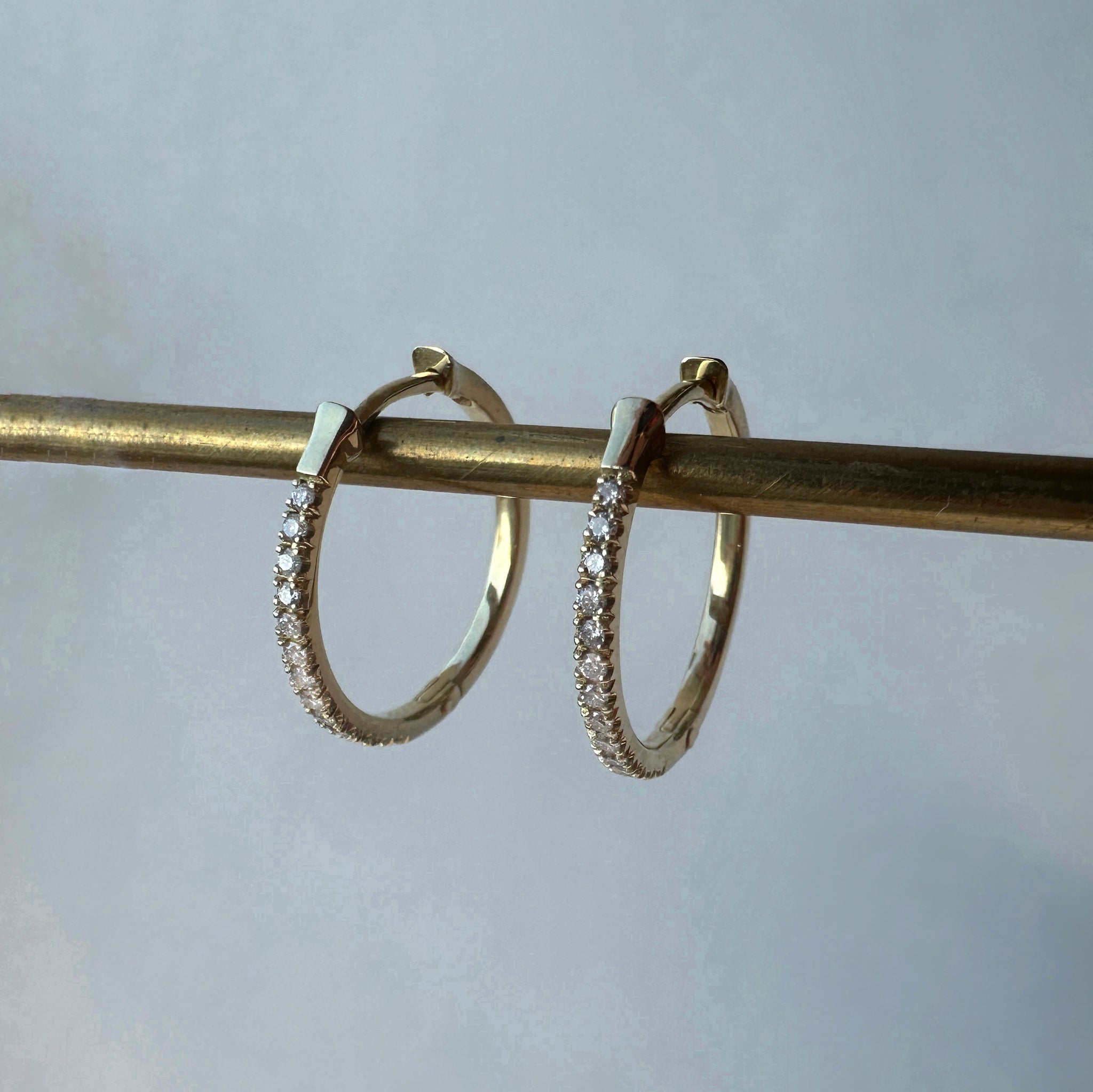 Classic gold hoops are always the right choice, set with sparkling round diamonds. The hoops are 2 cm diameter, lightweight, and perfect for everyday wear