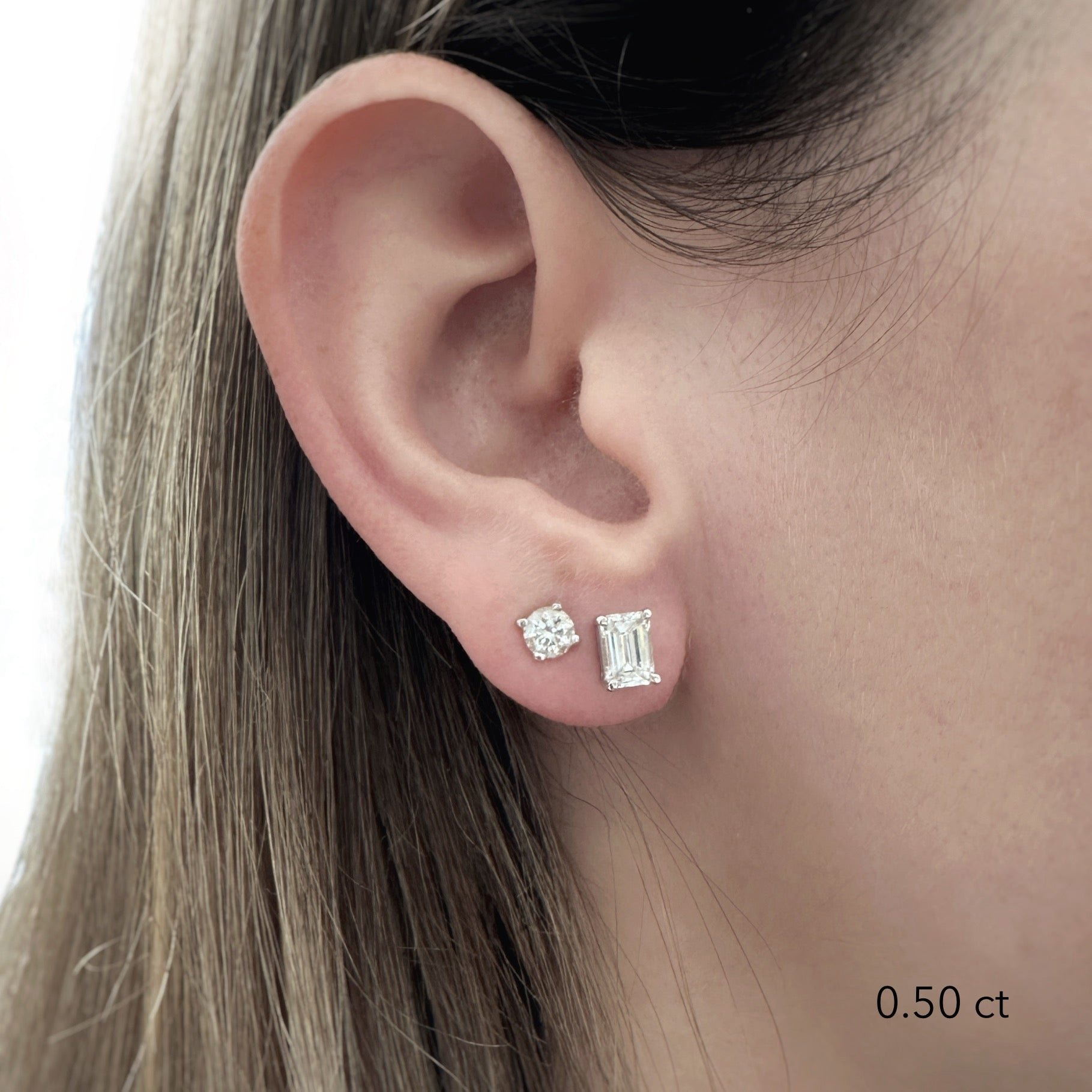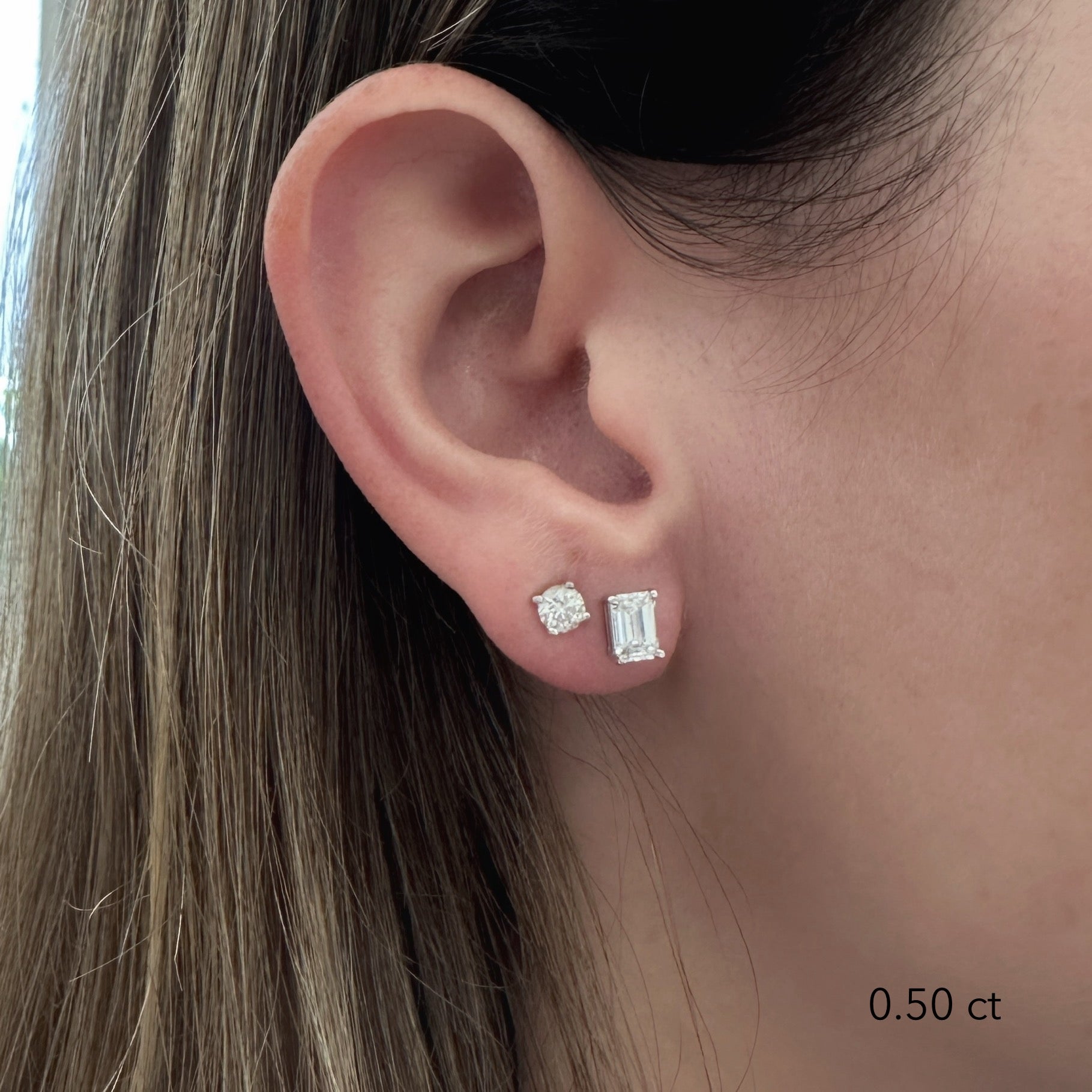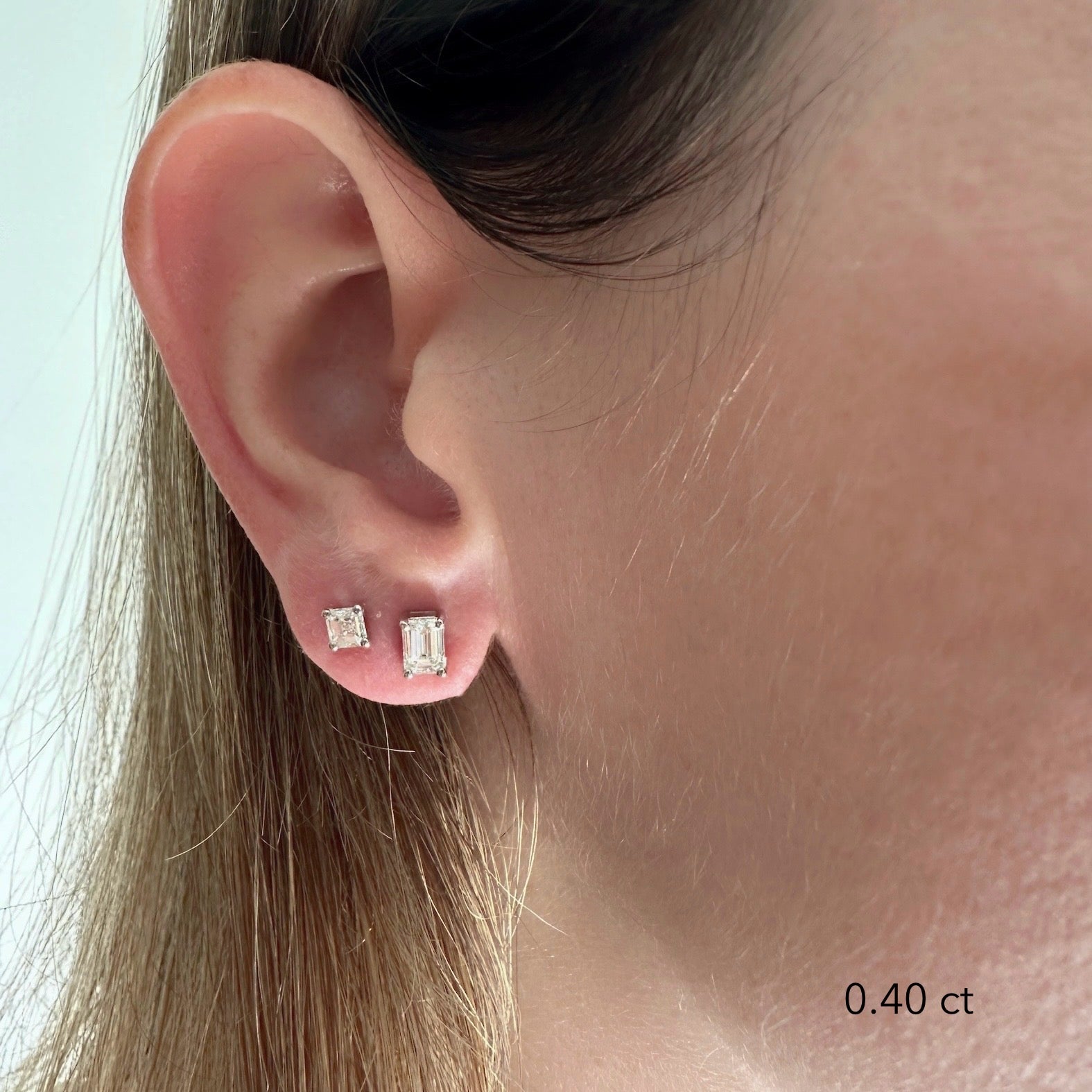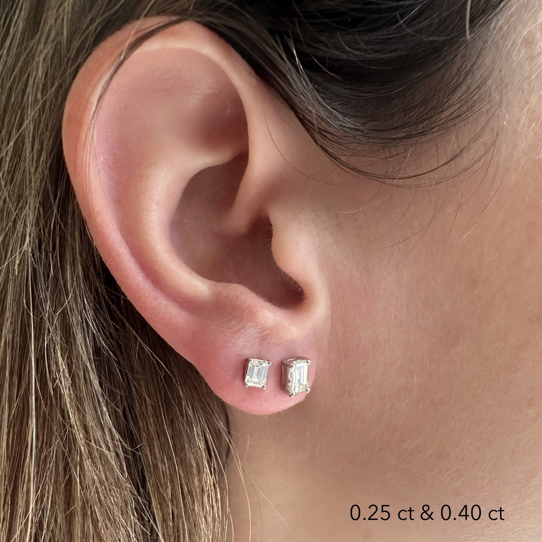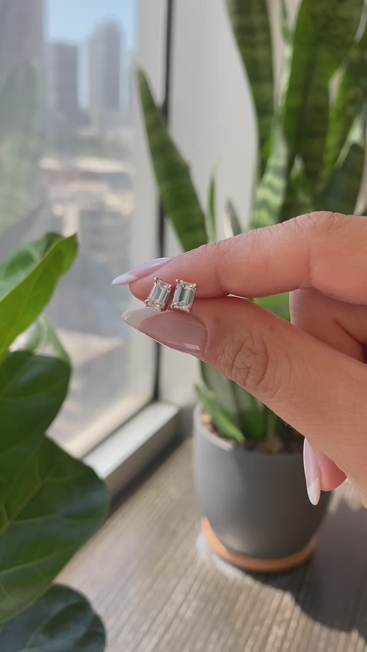 Emerald Diamond Studs. The perfect everyday earrings. Set with high quality diamonds-natural or lab-grown diamonds, in your choice. Please note: The weight is listed per single earring.