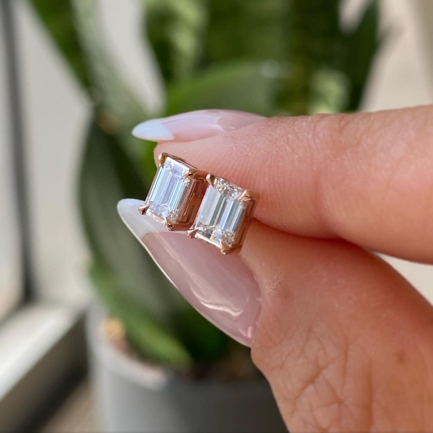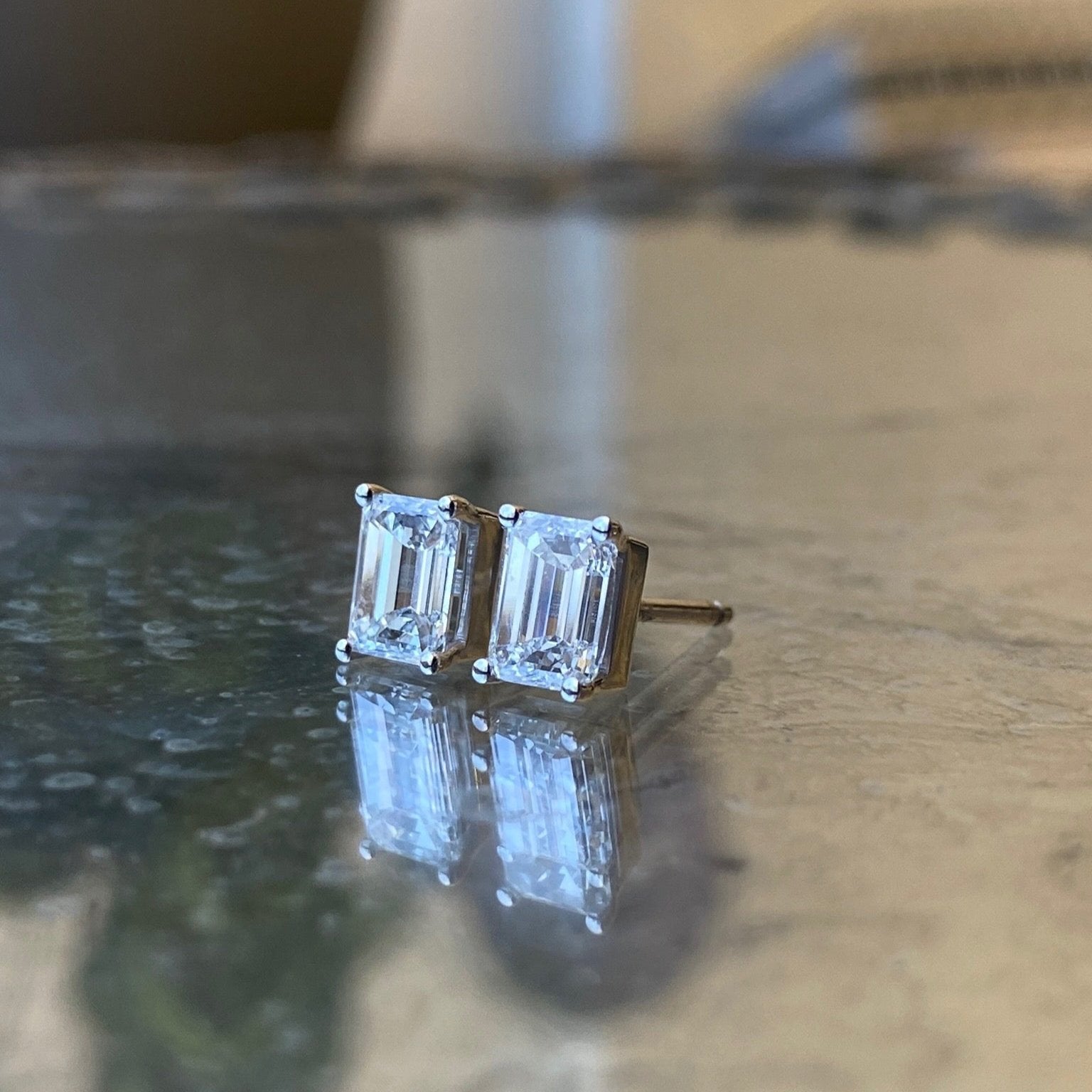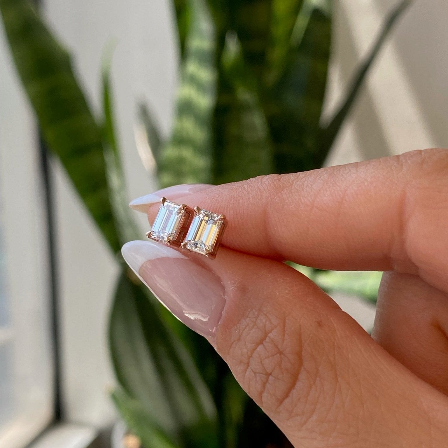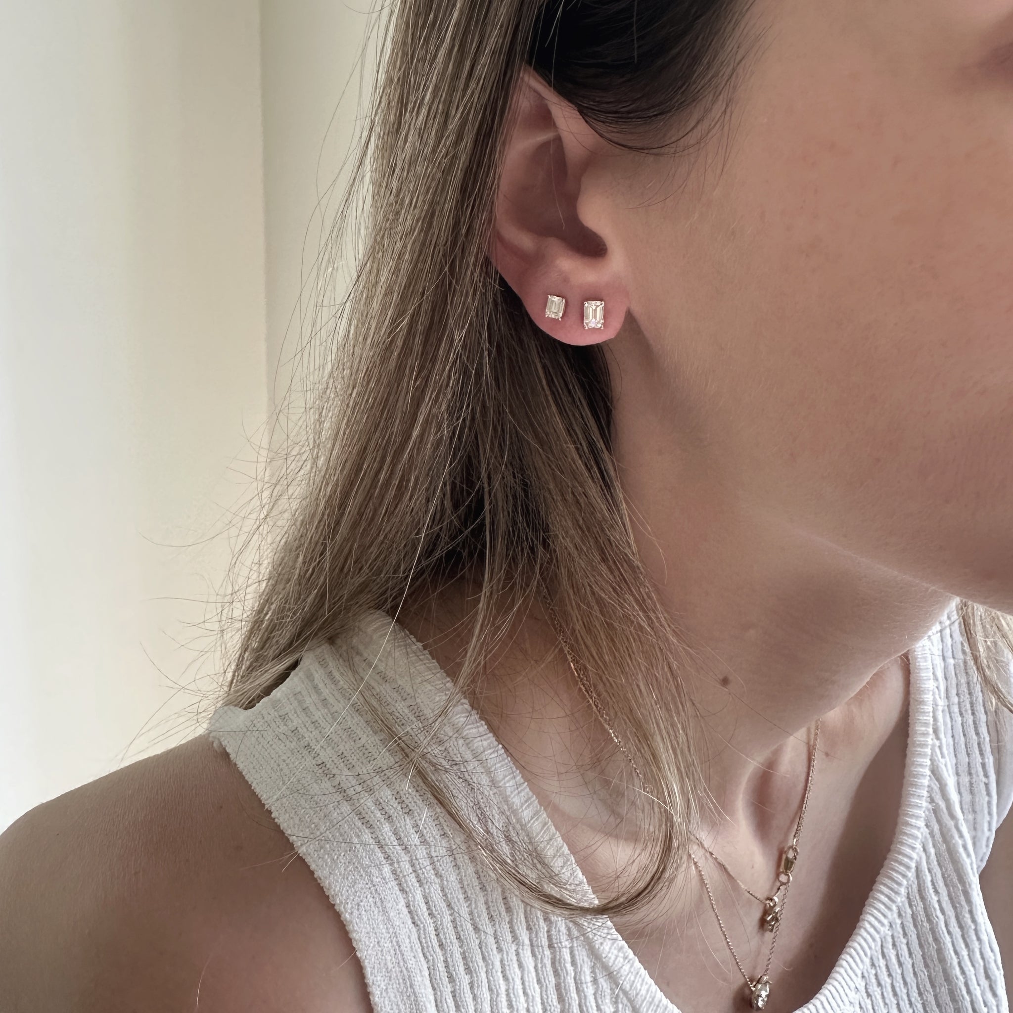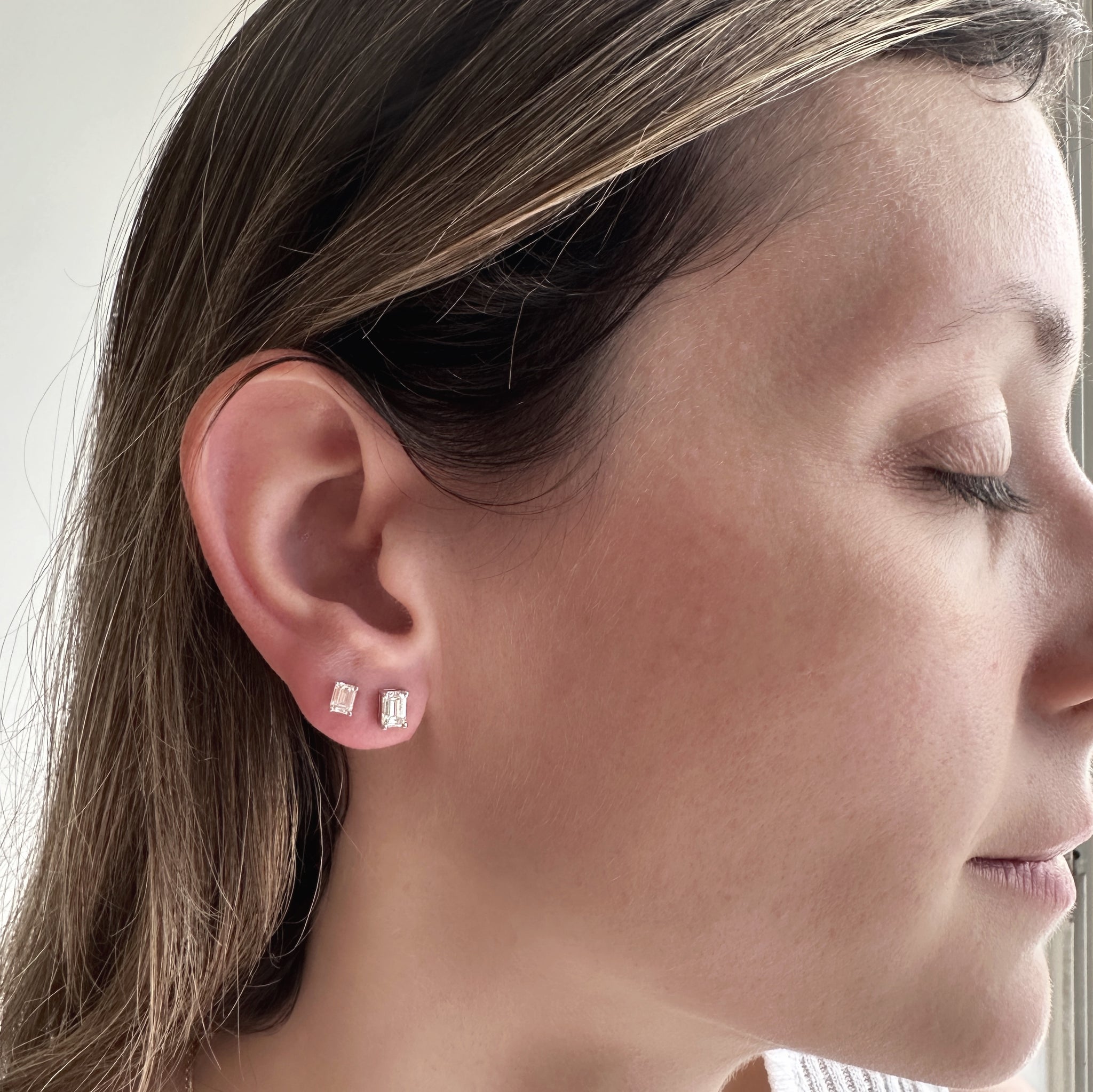 Emerald Diamond Studs. The perfect everyday earrings. Set with high quality diamonds-natural or lab-grown diamonds, in your choice. Please note: The weight is listed per single earring.