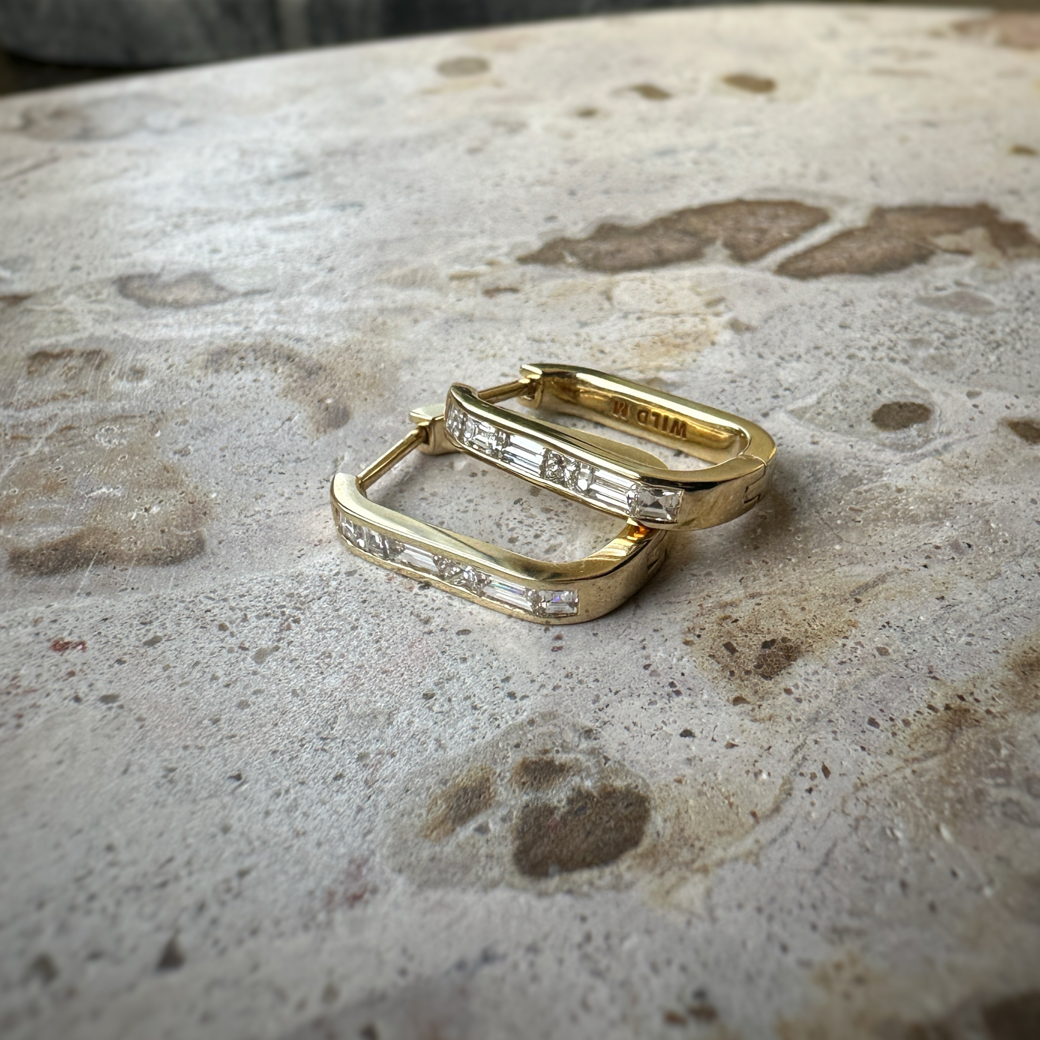 These earrings glorifies square shape diamonds, set with Baguettes, Carre and Princess Cut. Wear them with a T shirt or for a magical night out.