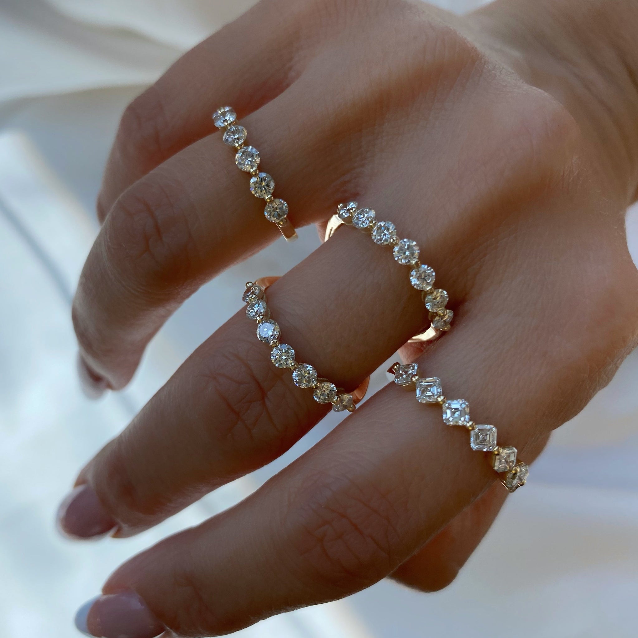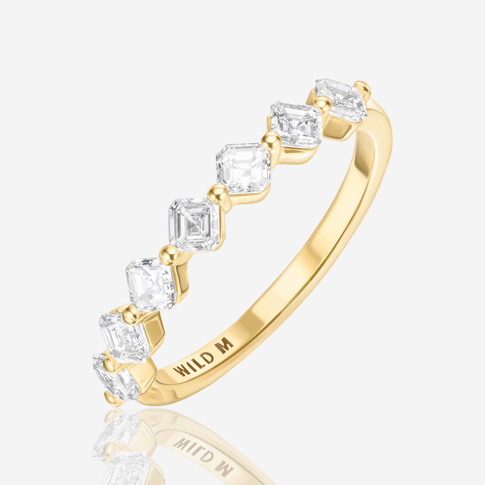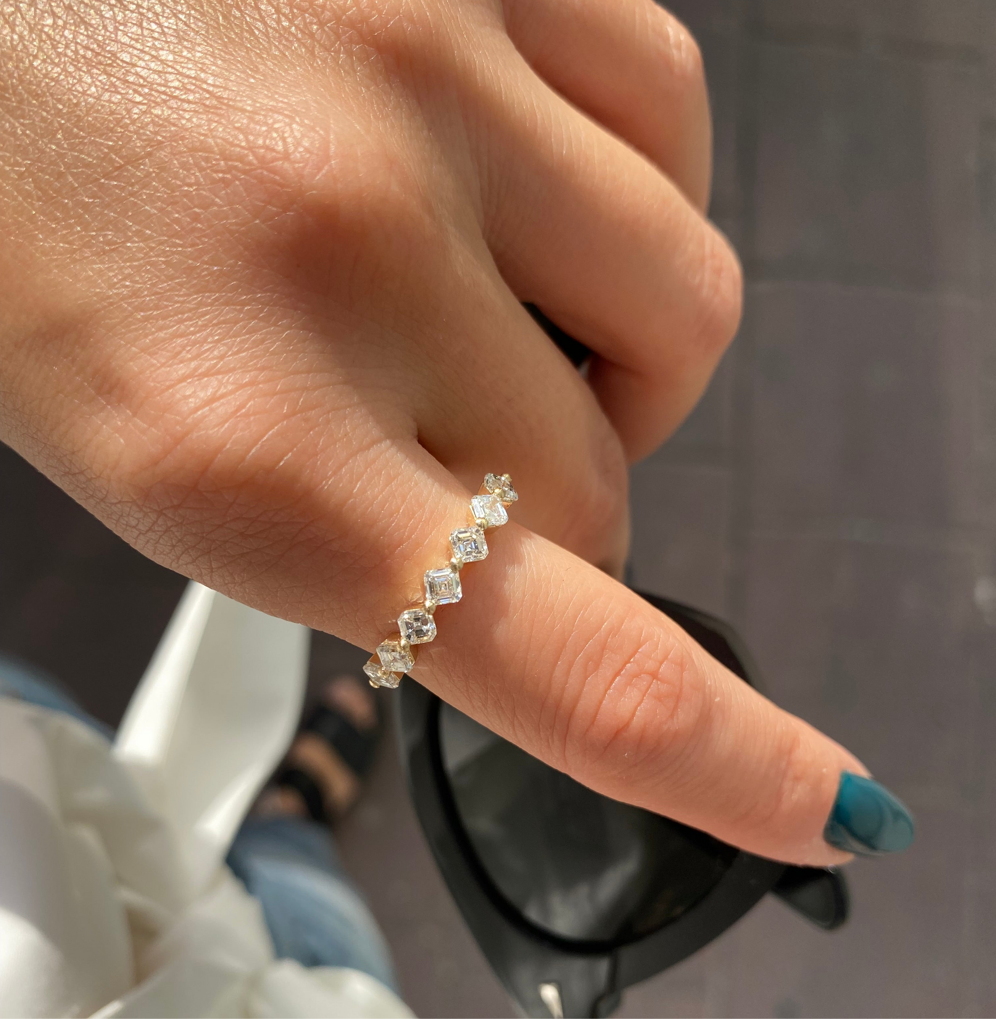 Seven bright and beautiful Asher-Kat diamonds with sharing a prong.