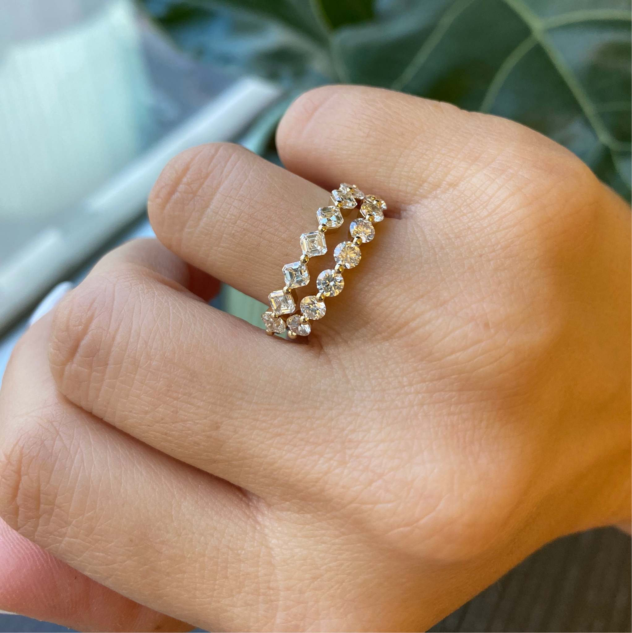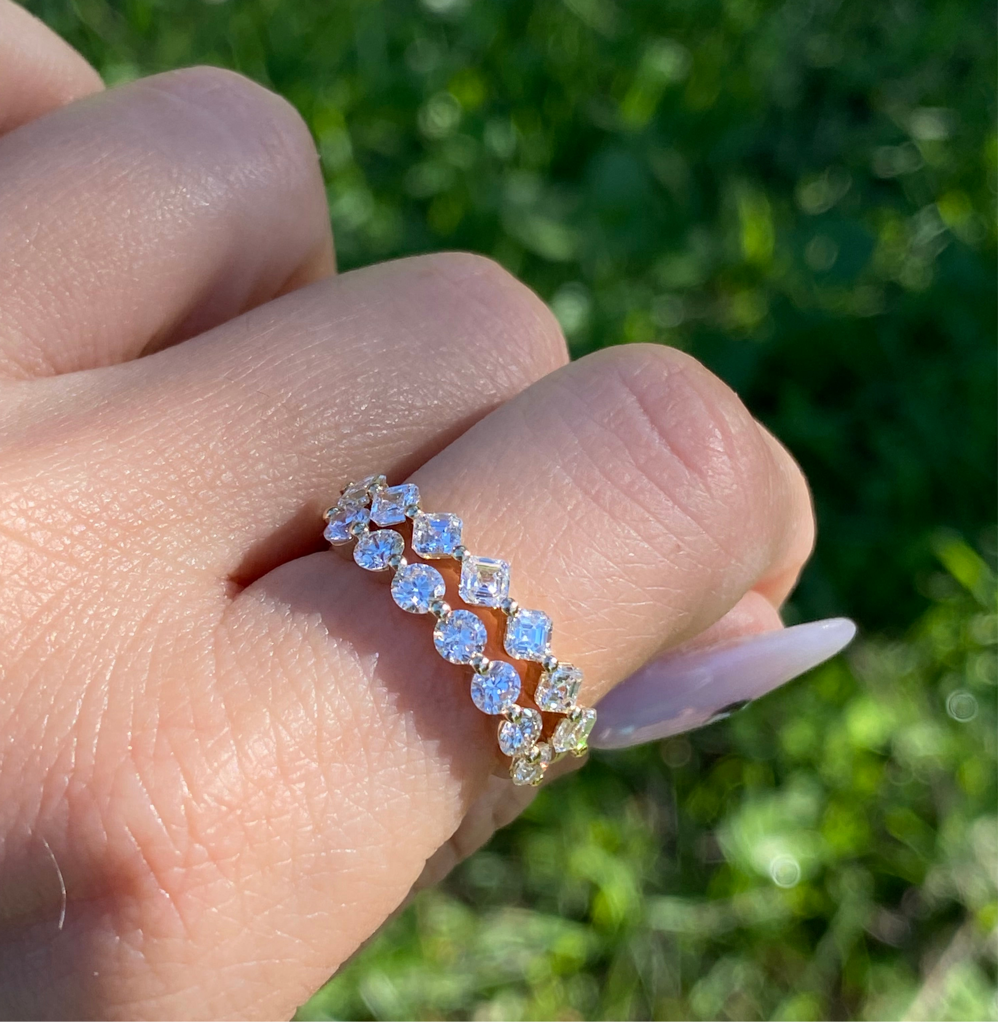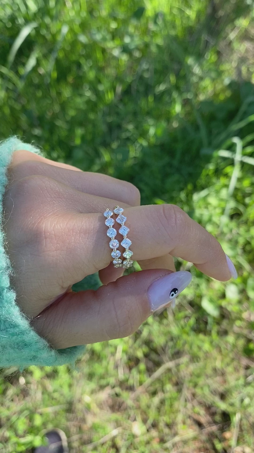 Seven bright and beautiful Asher-Kat diamonds with sharing a prong.