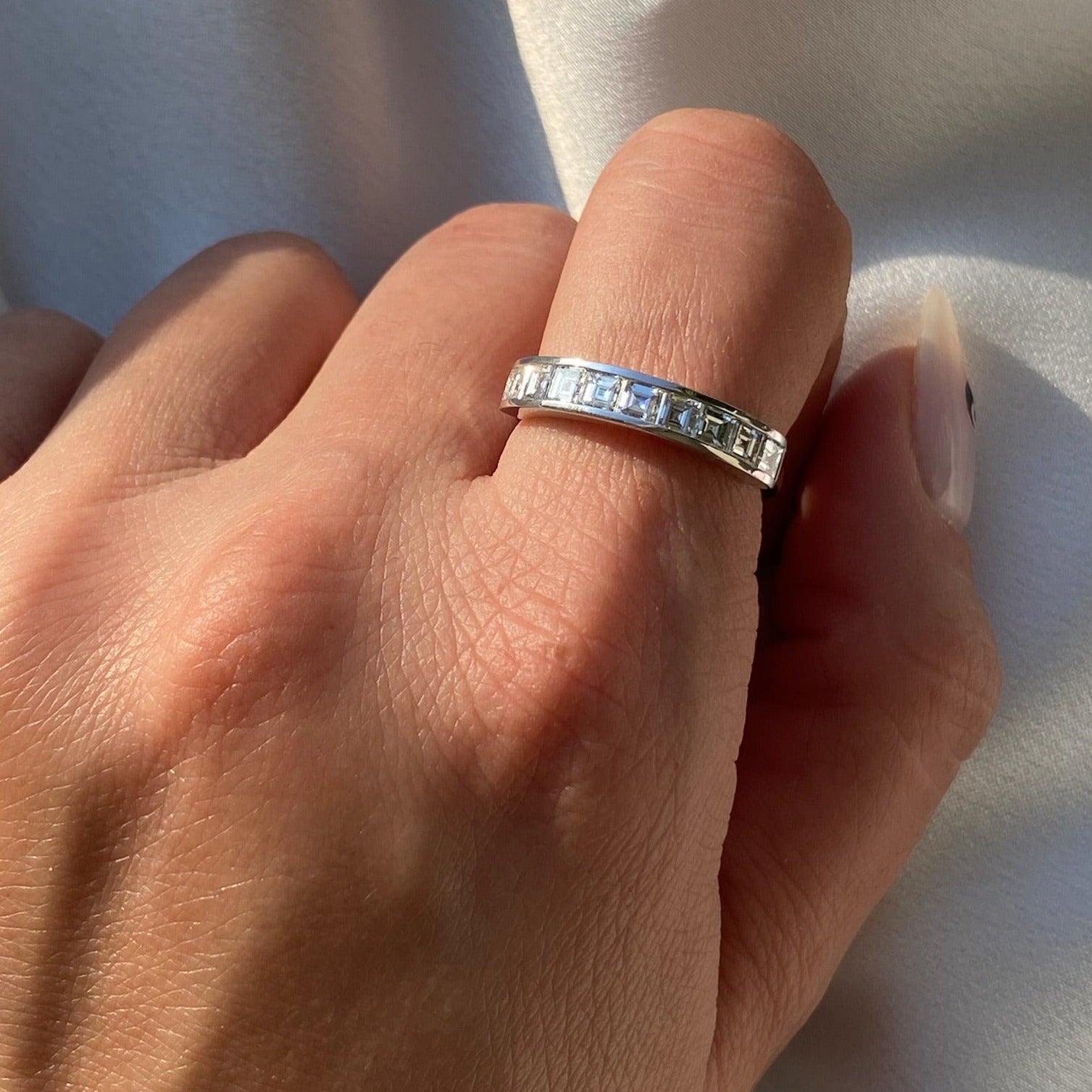 An elegant ring of nine natural diamonds in a square carat cut, and of high quality, embedded in a delicate and beautiful gold frame inlay for a uniform, large and shiny appearance of diamonds.