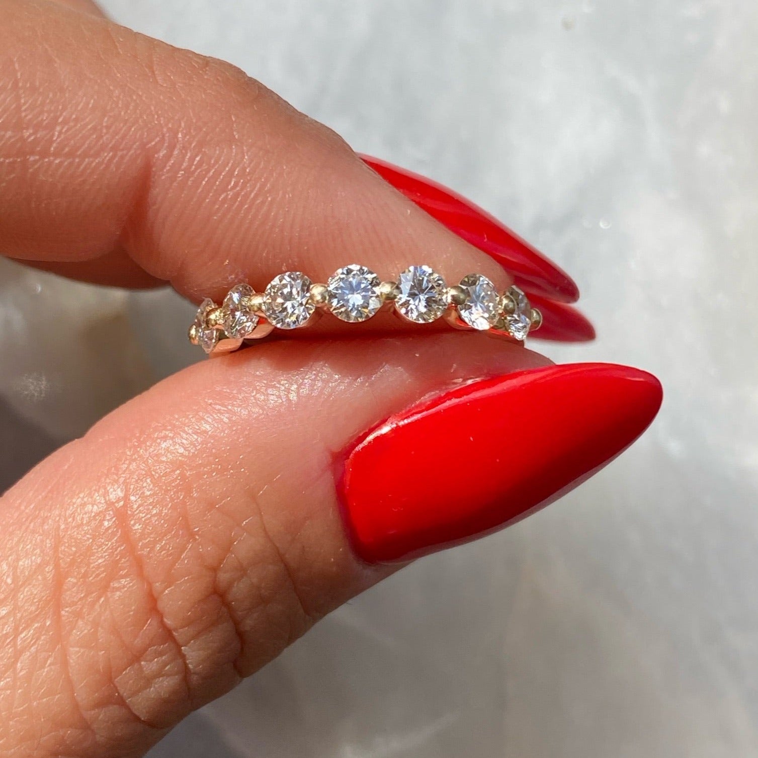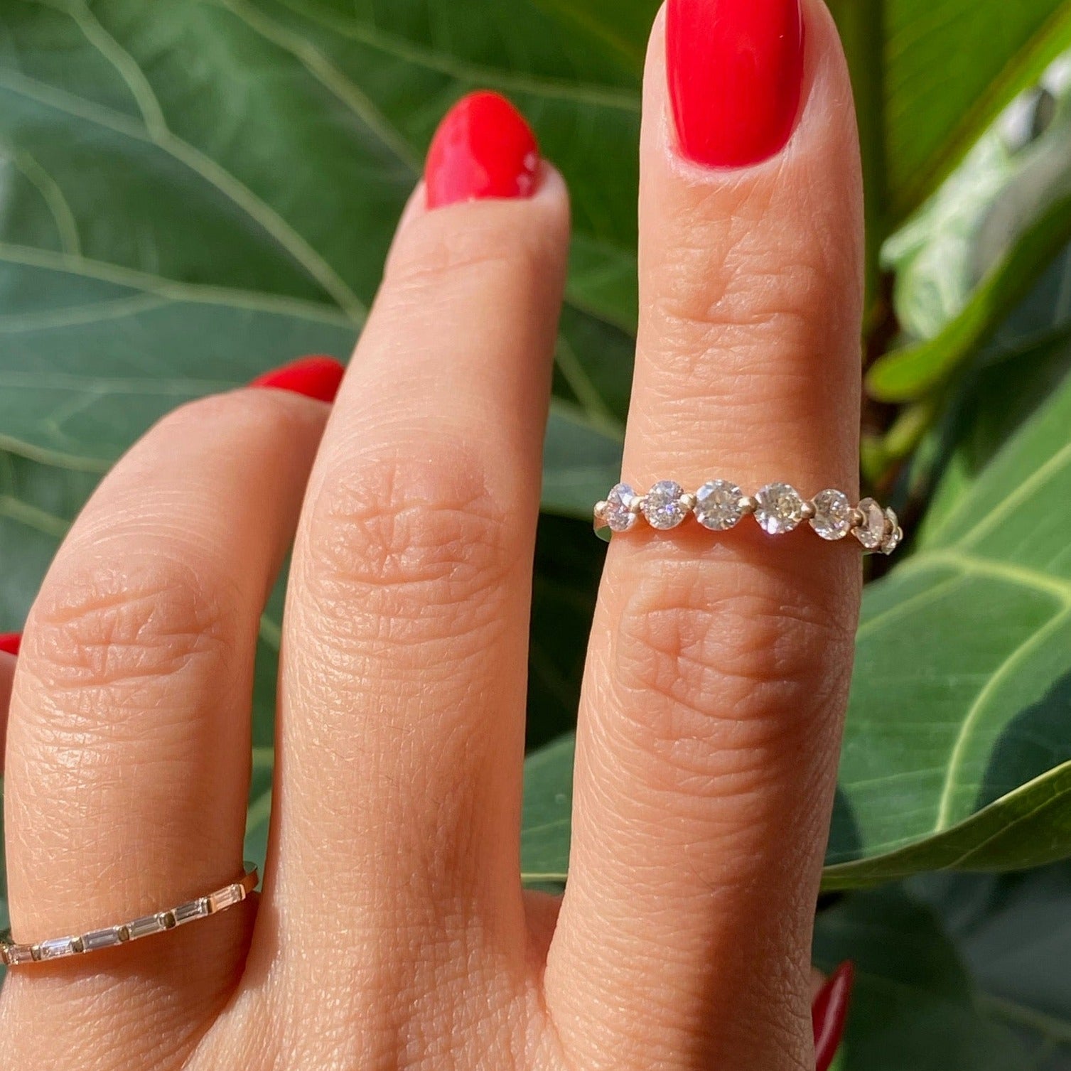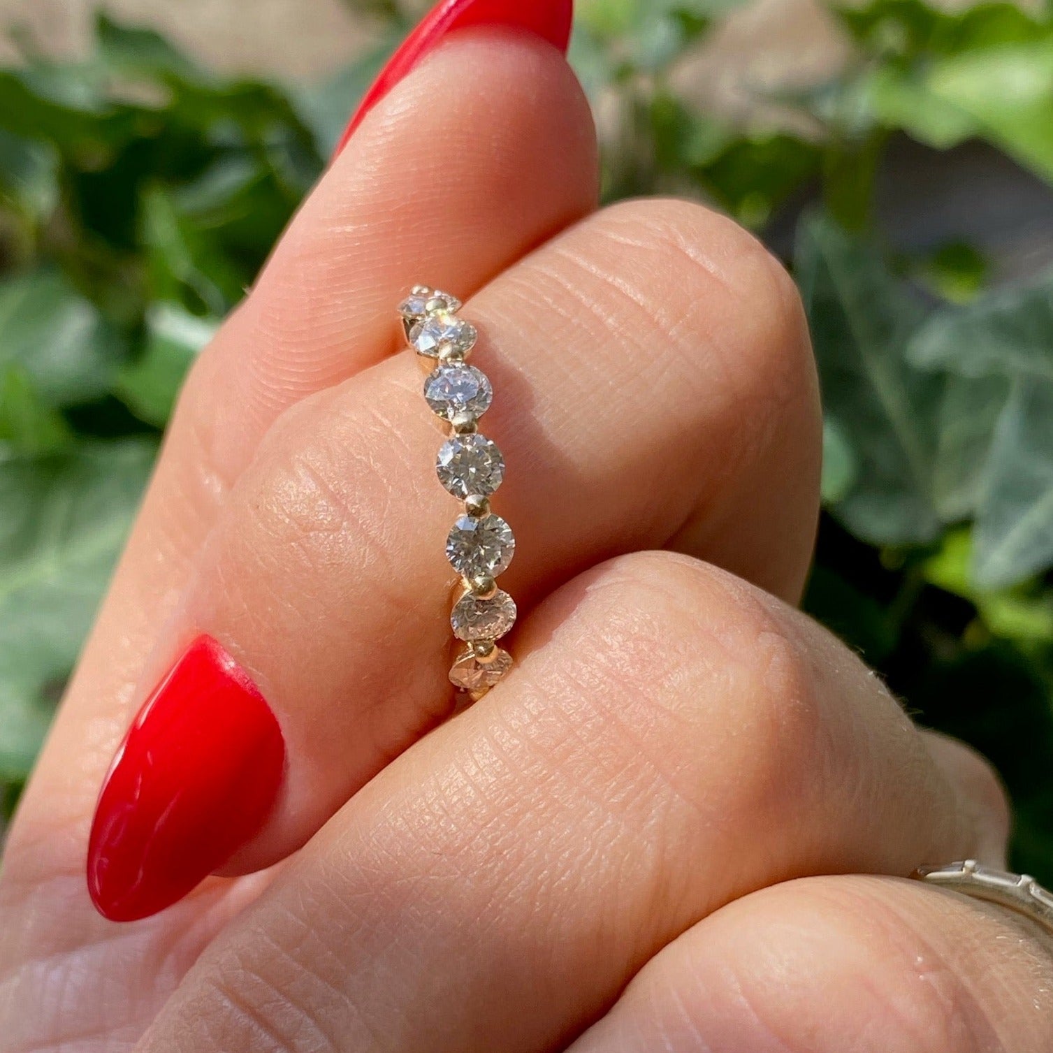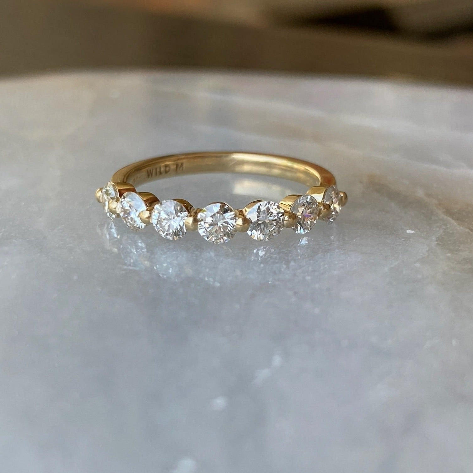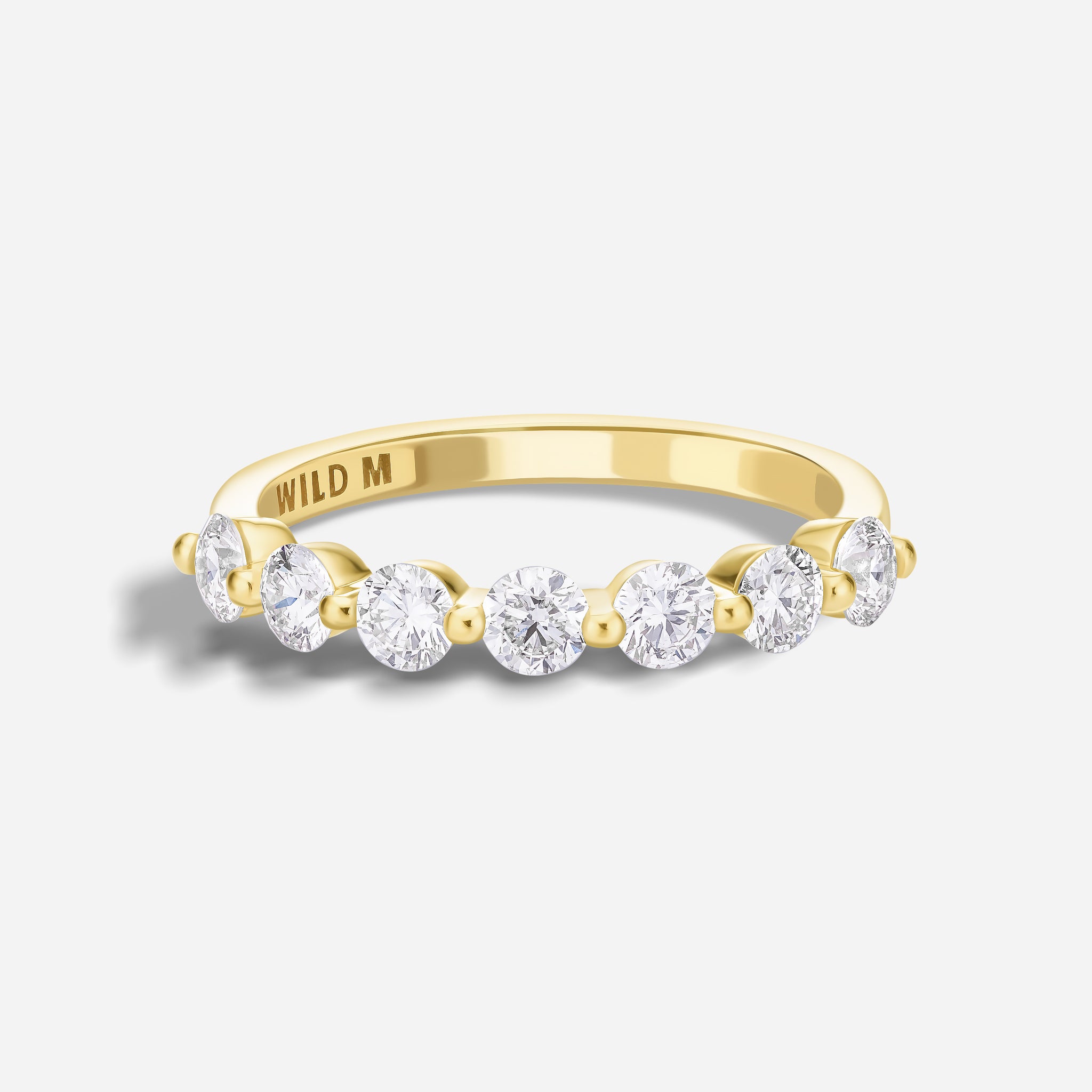 A classic with a twist. Seven Round Diamonds set in a shared prong setting.