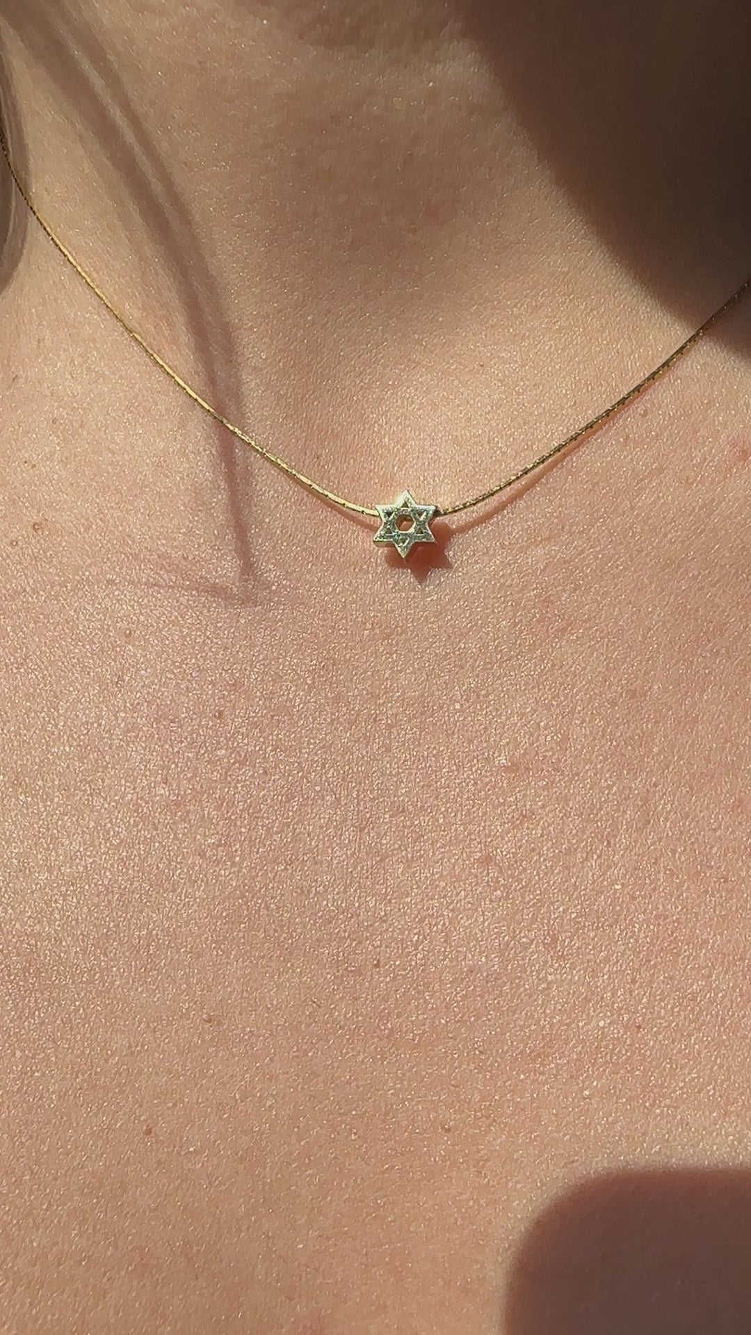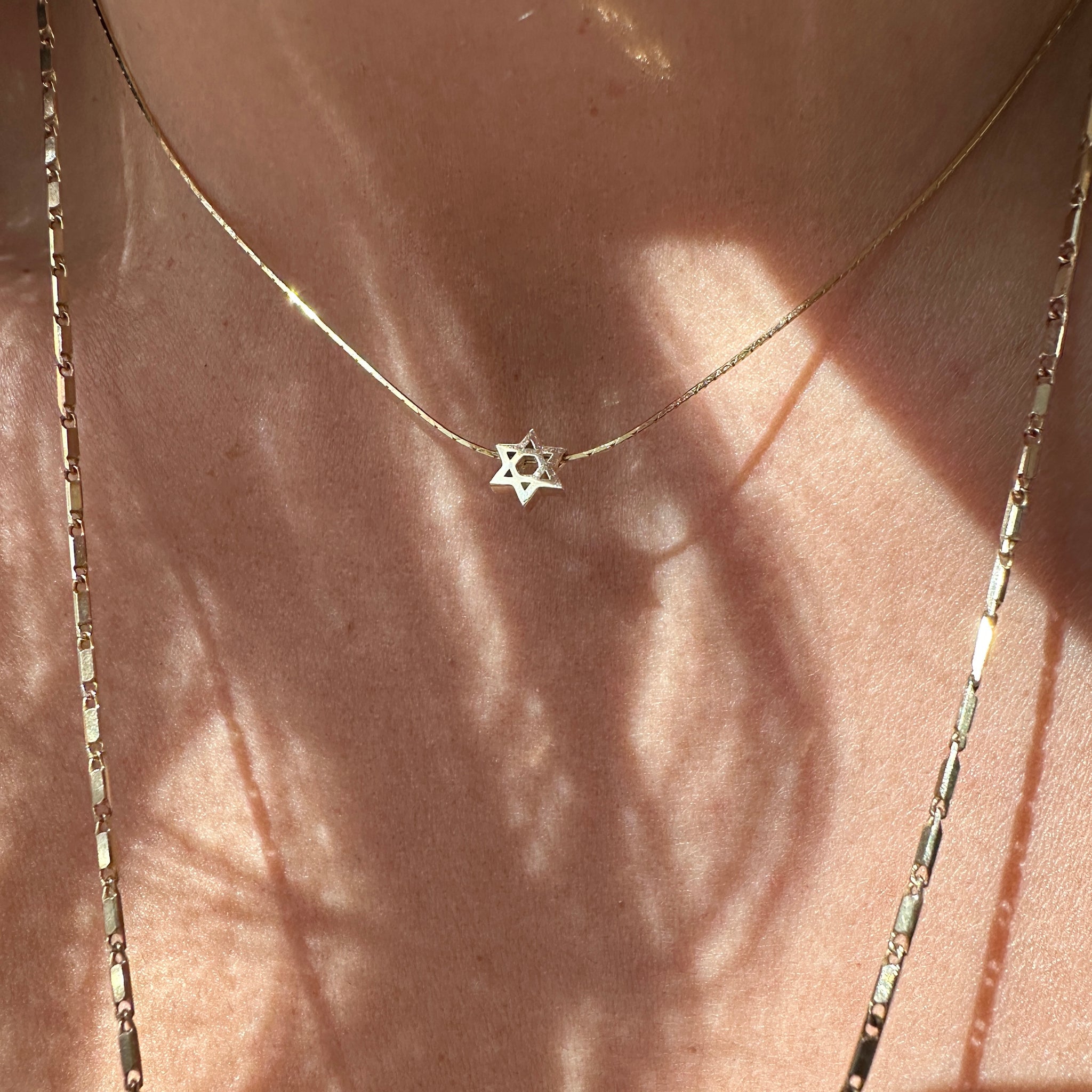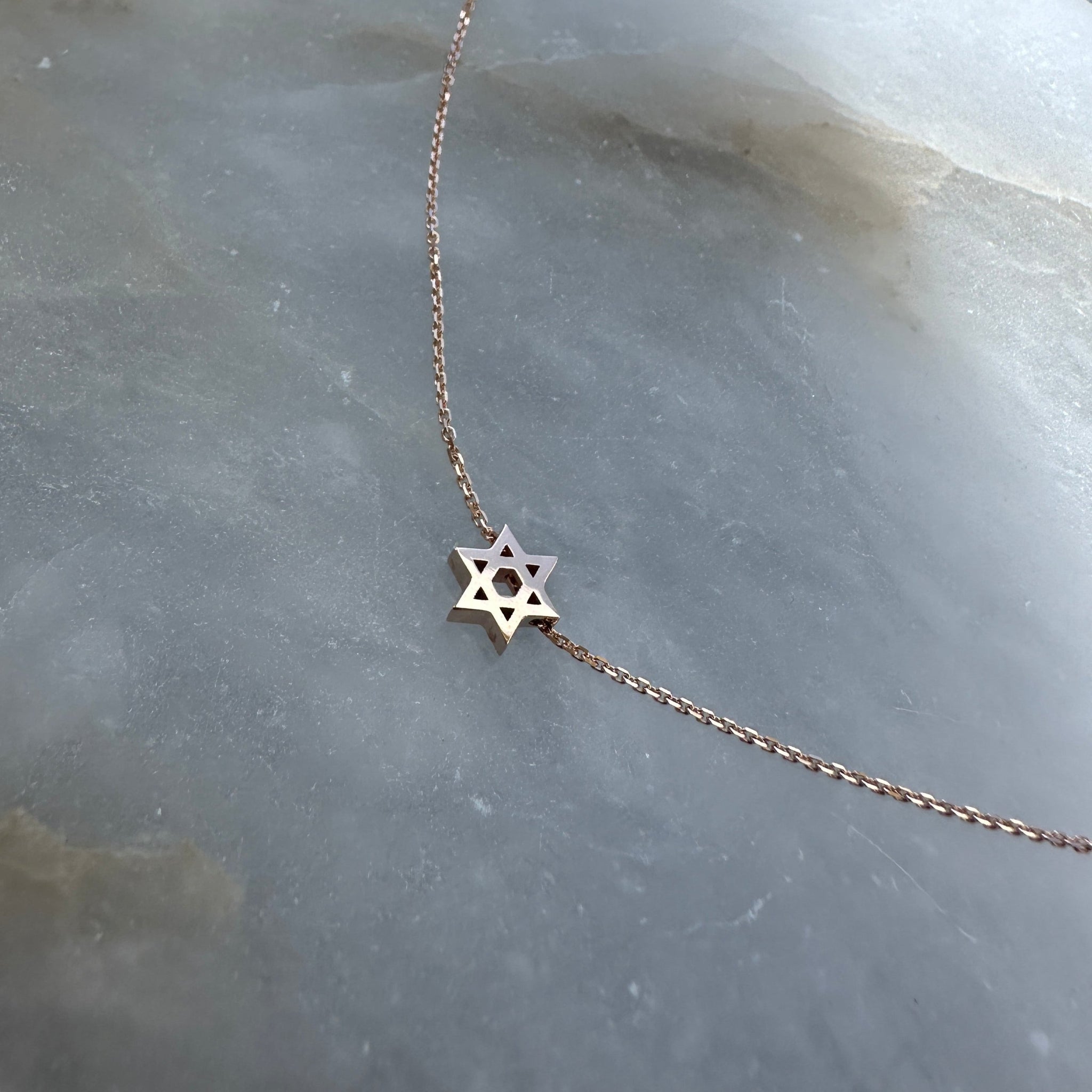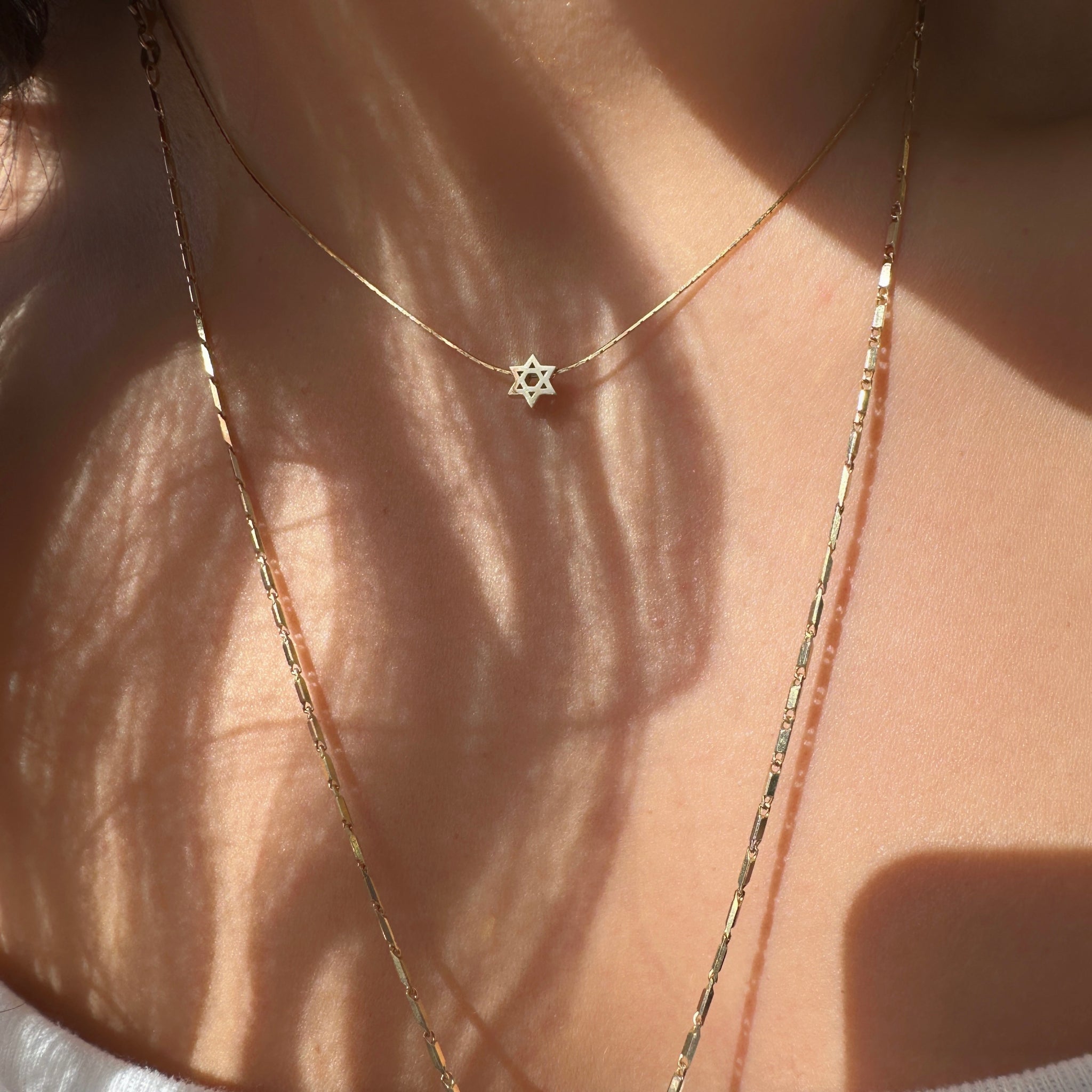 A delicate, minimalistic Star of David, made of 14K gold. Wear close to you neckline and never take off.
