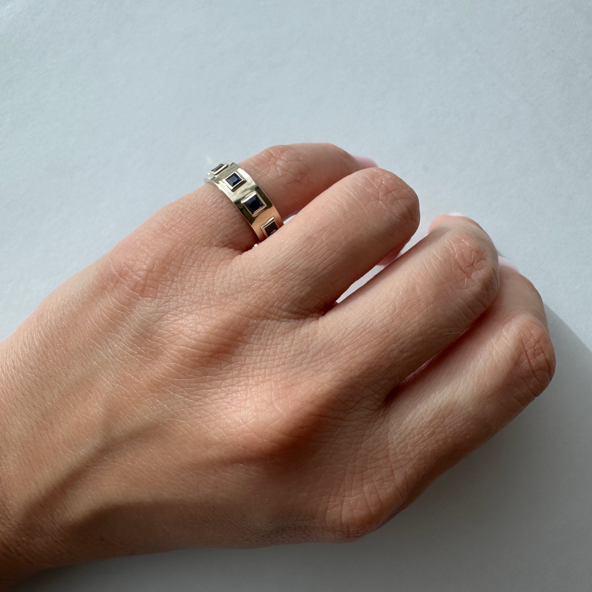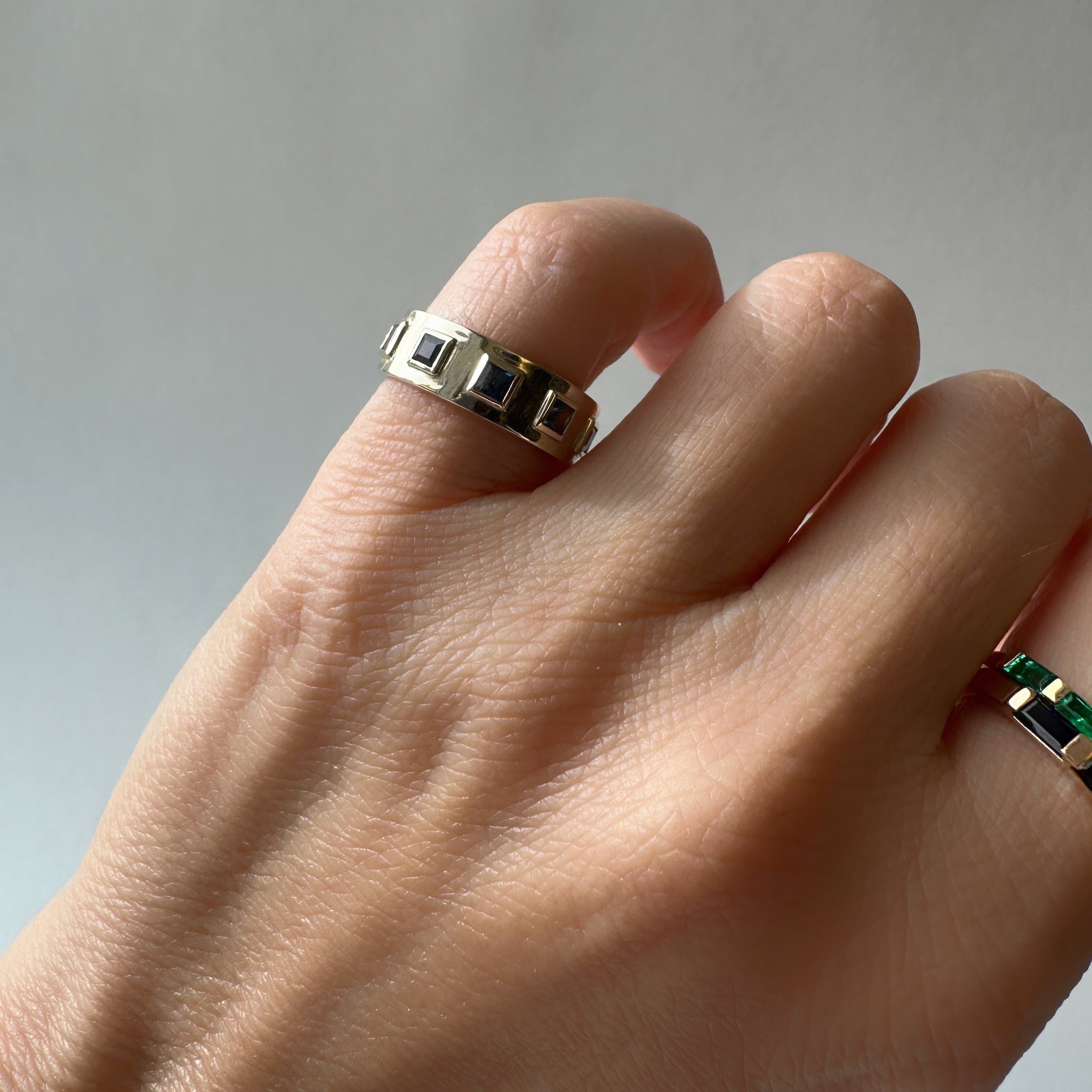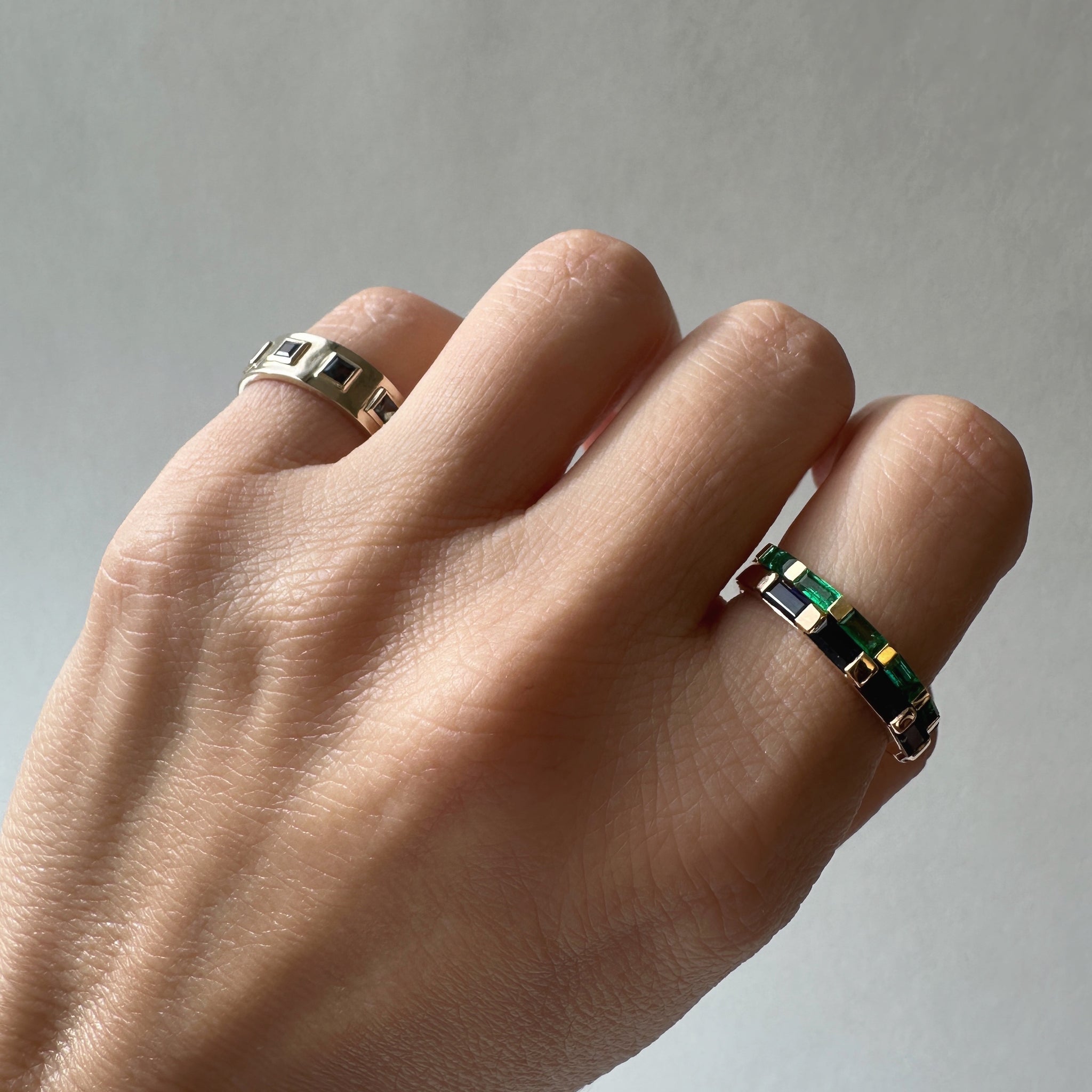 Our Seven Square Islands pinky ring in 18K champagne gold, and a touch of color.