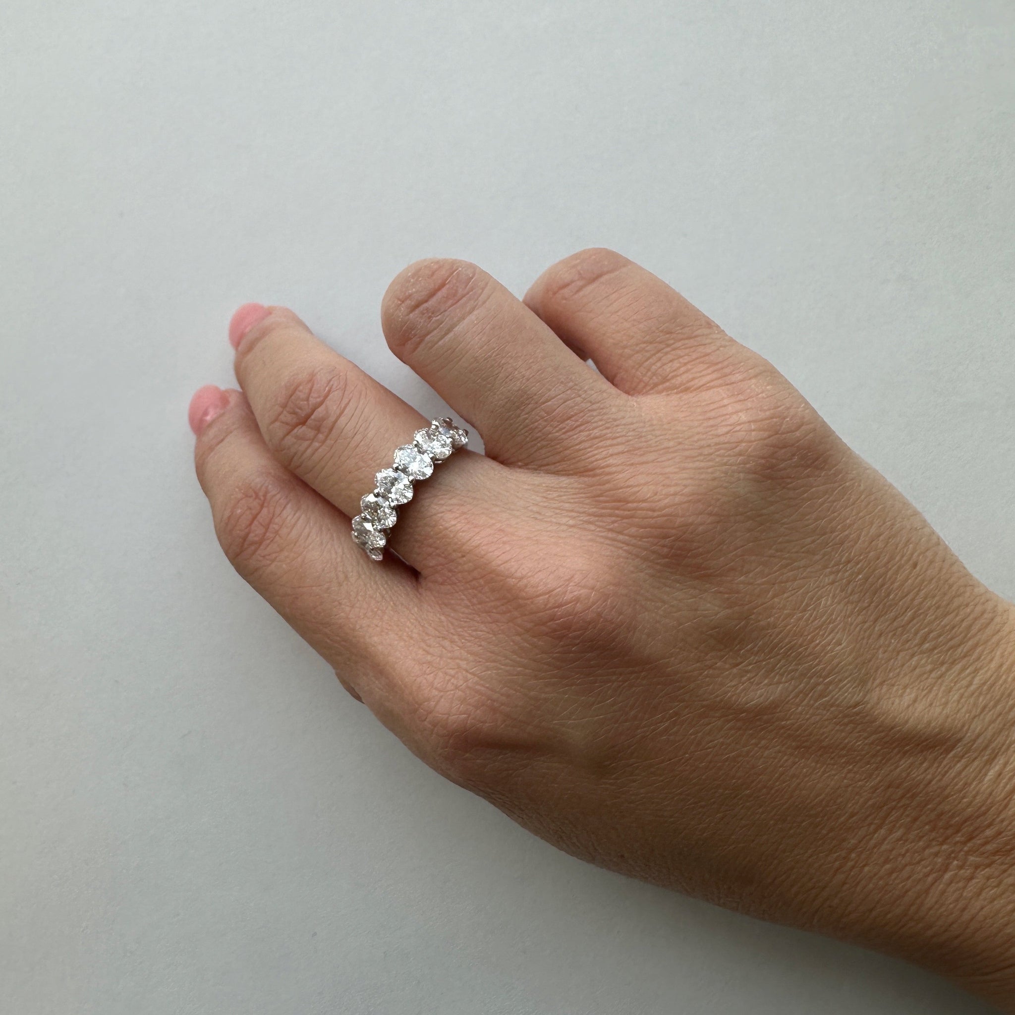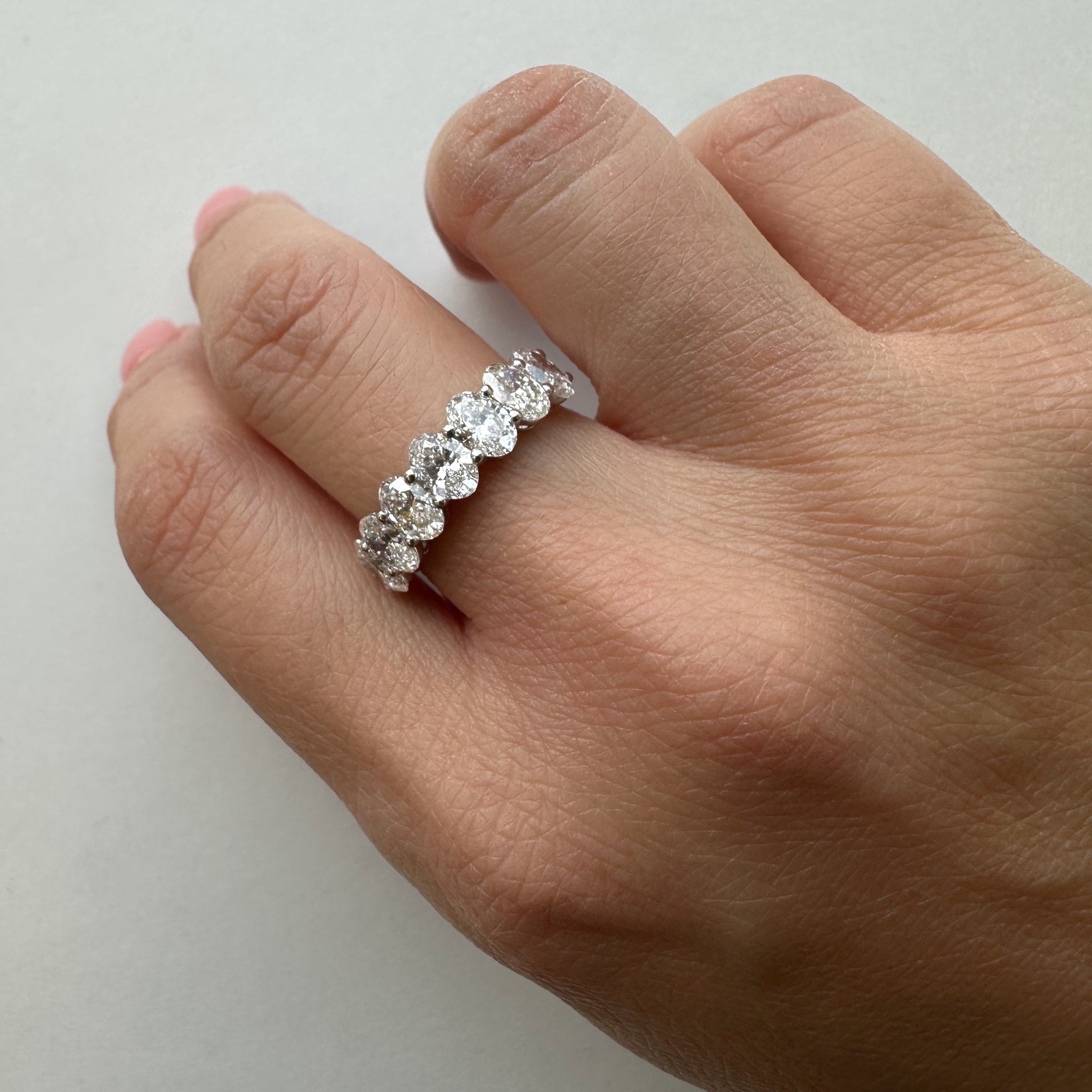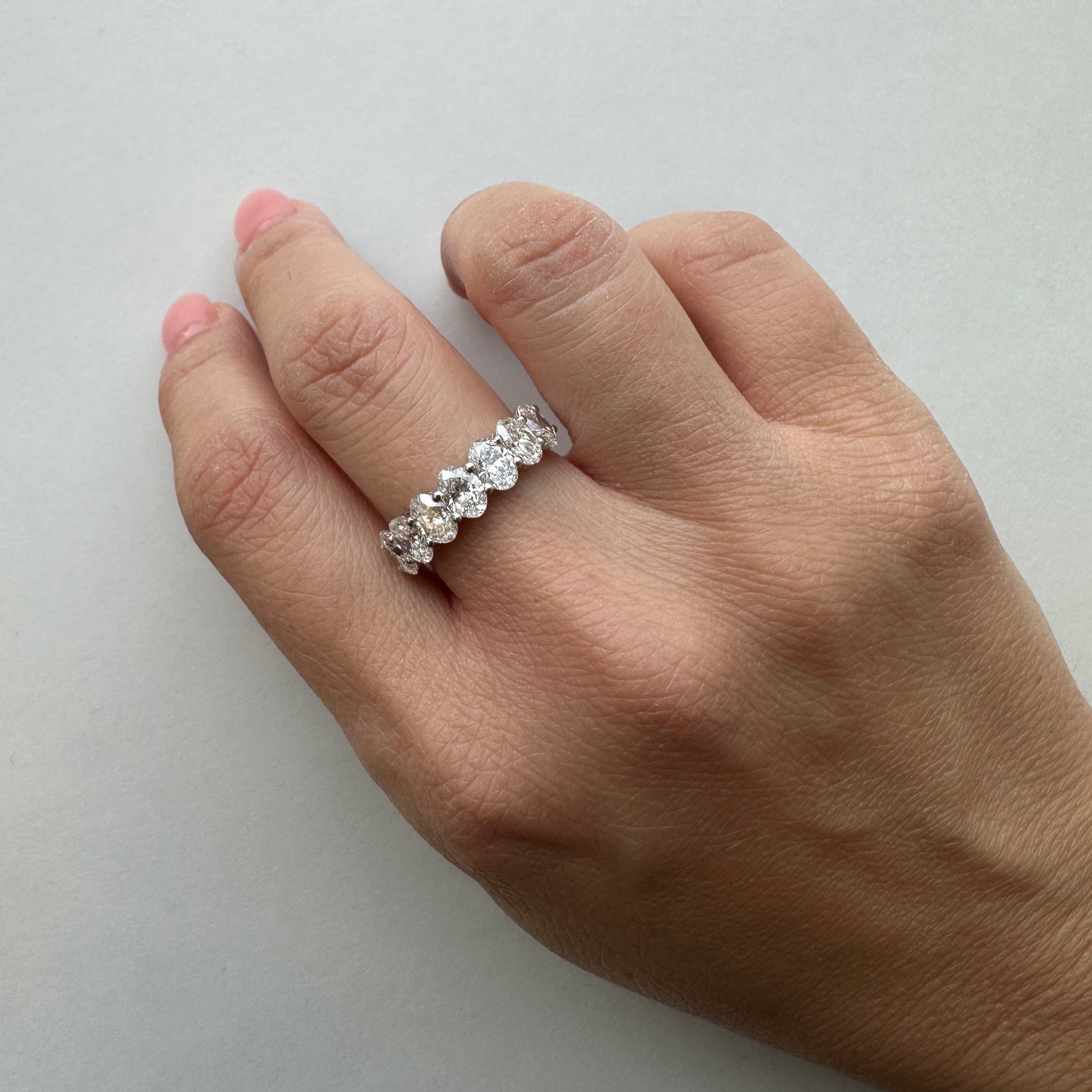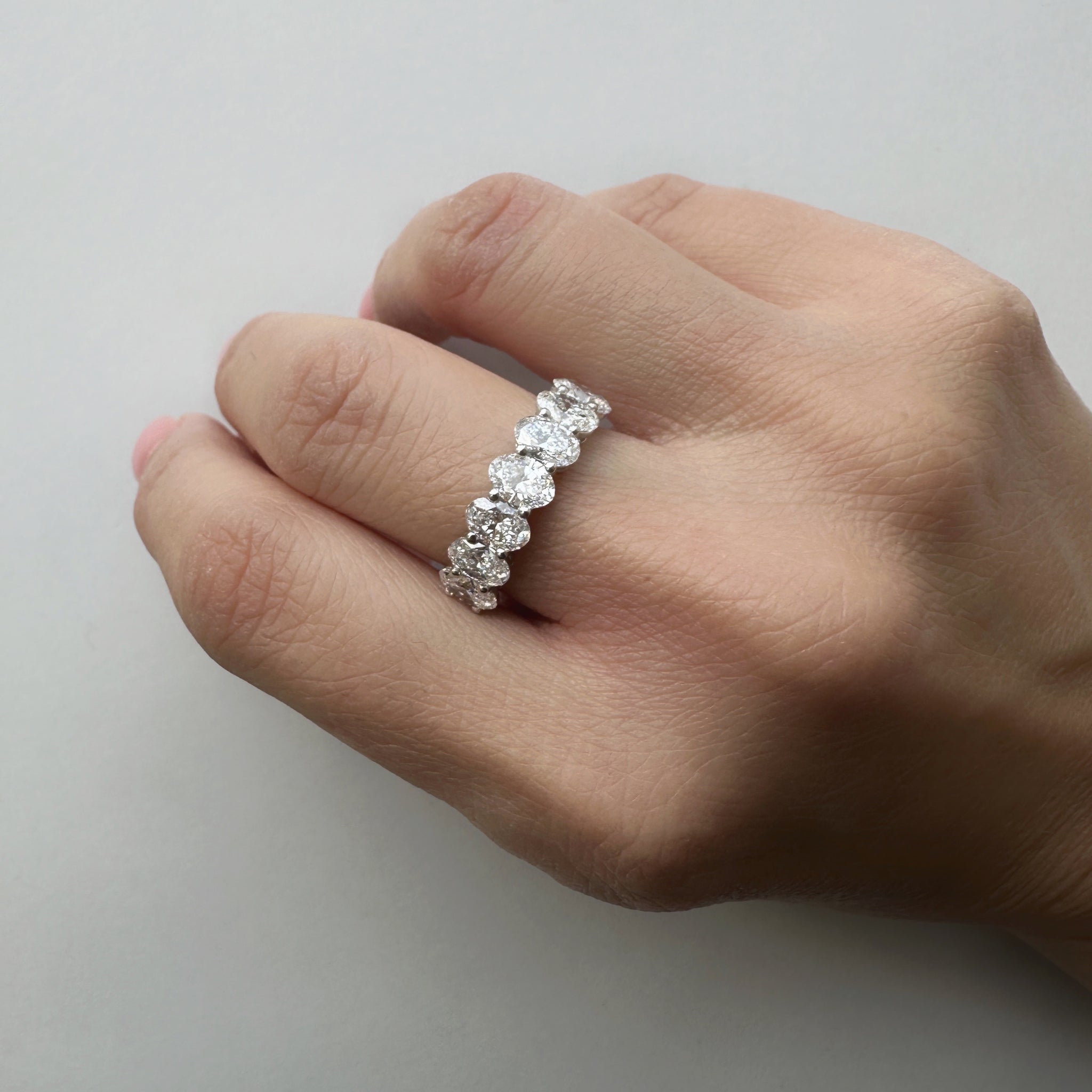 An elegant and luxurious ring featuring seven sparkling Oval-cut diamonds set in 18k gold.