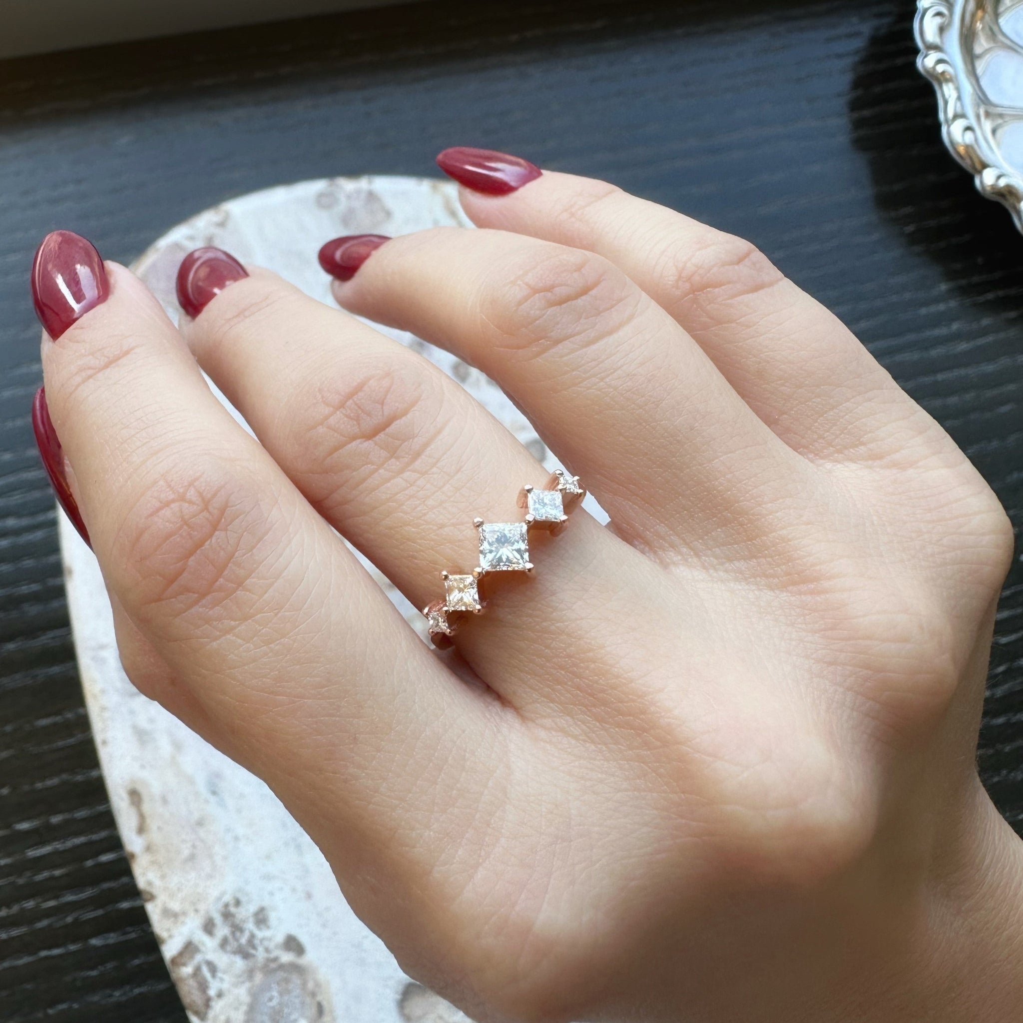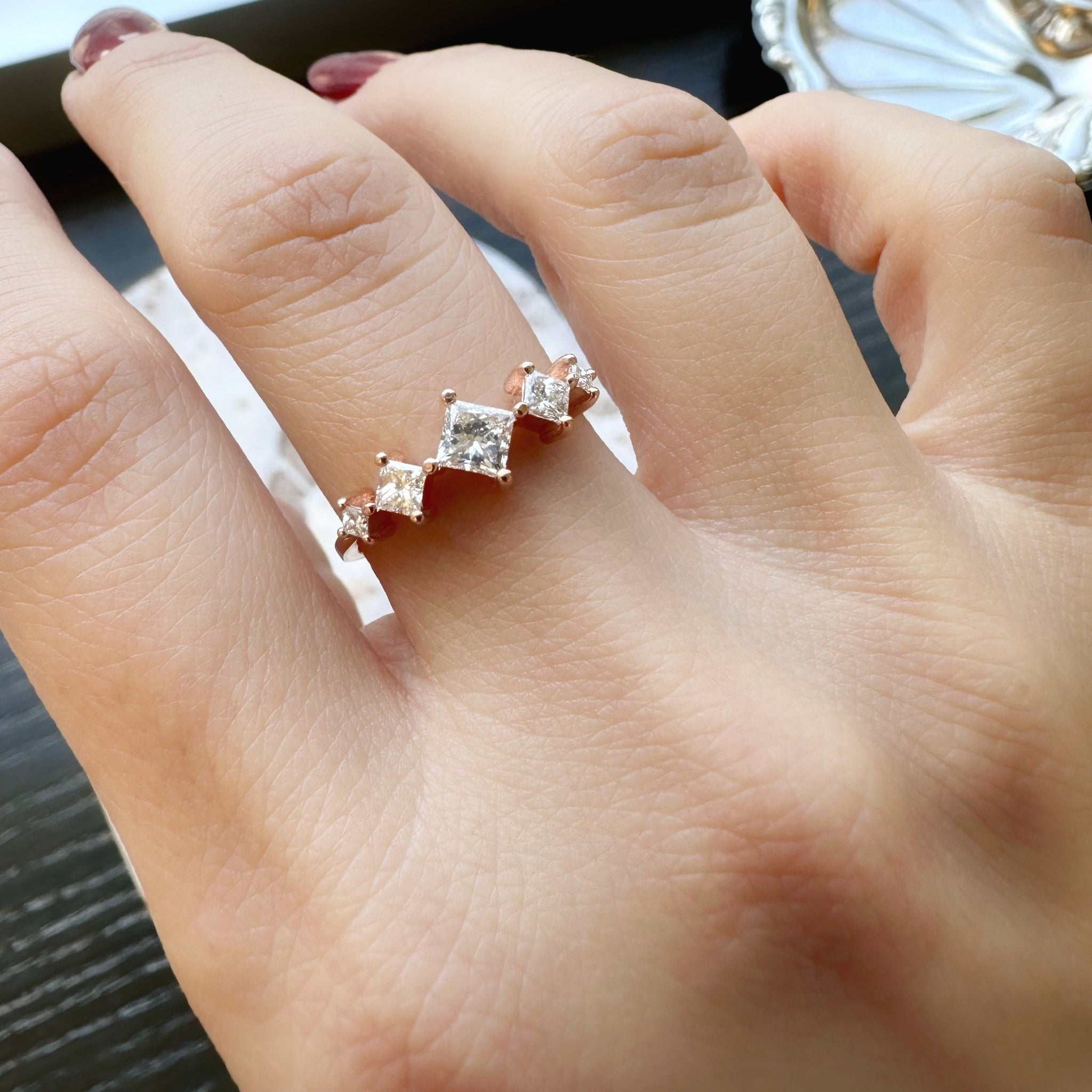 Five Princess Cut diamonds that create a princely and impressive ring.