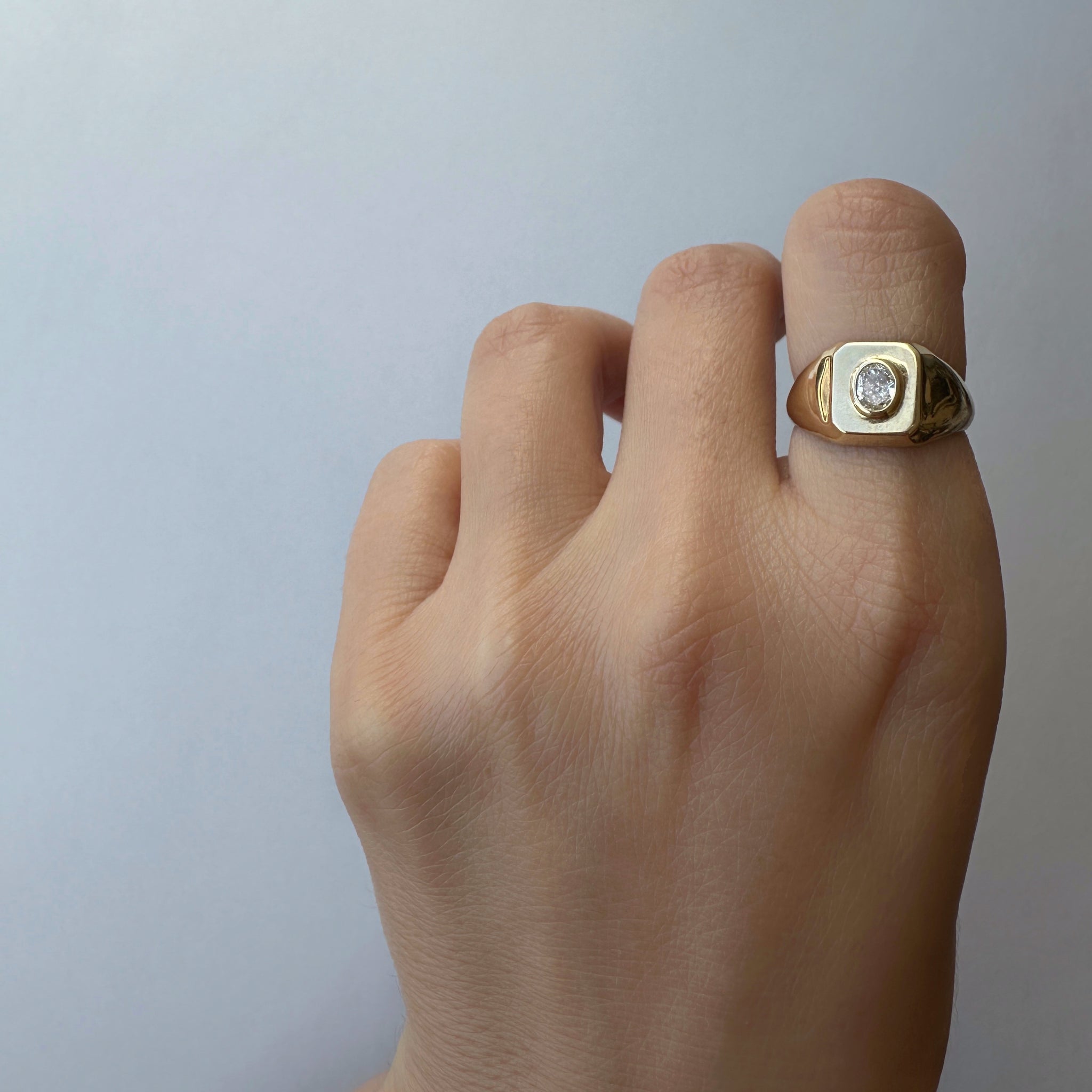 The ultimate signet ring, set with a beautiful Oval cut diamond weighing 0.20 carats.