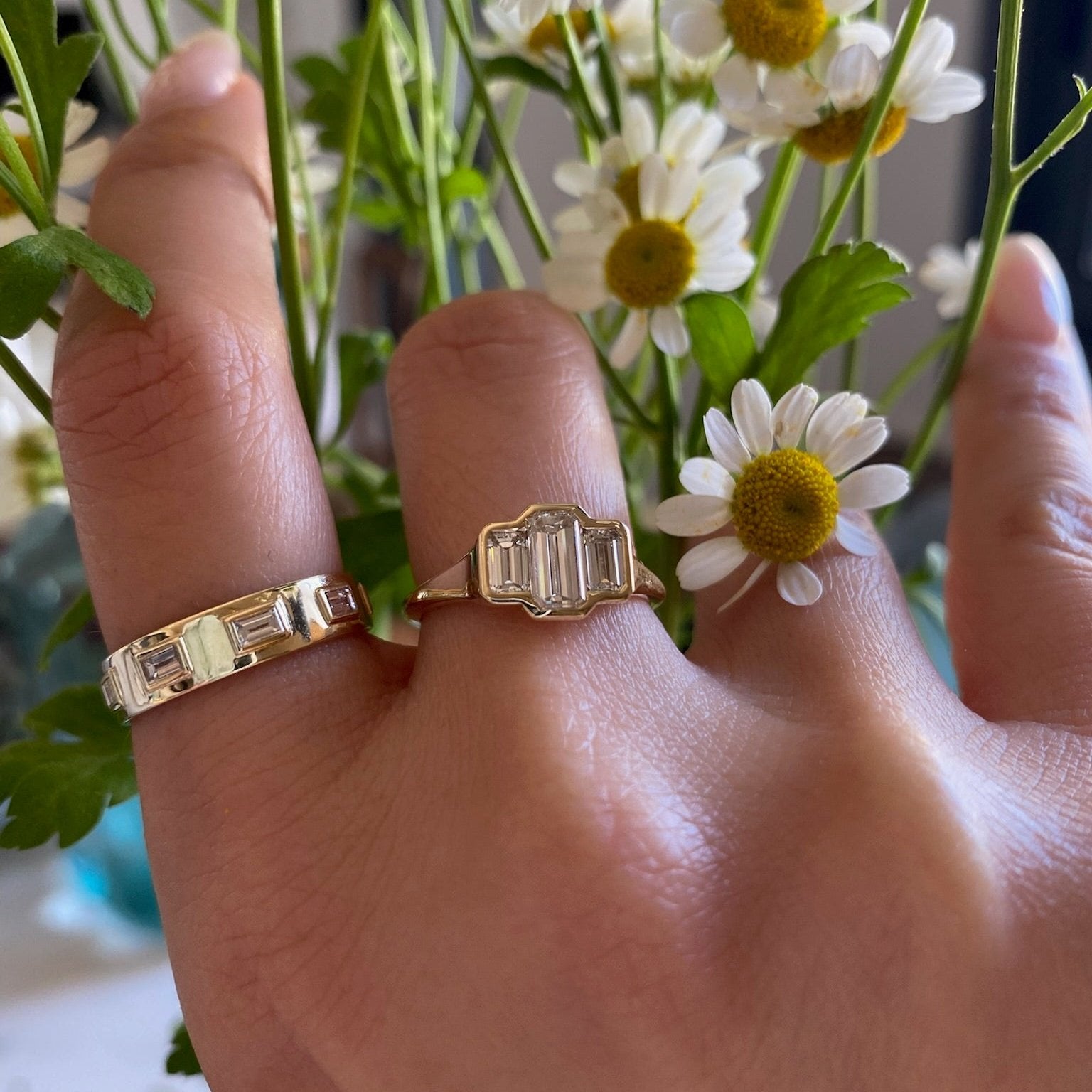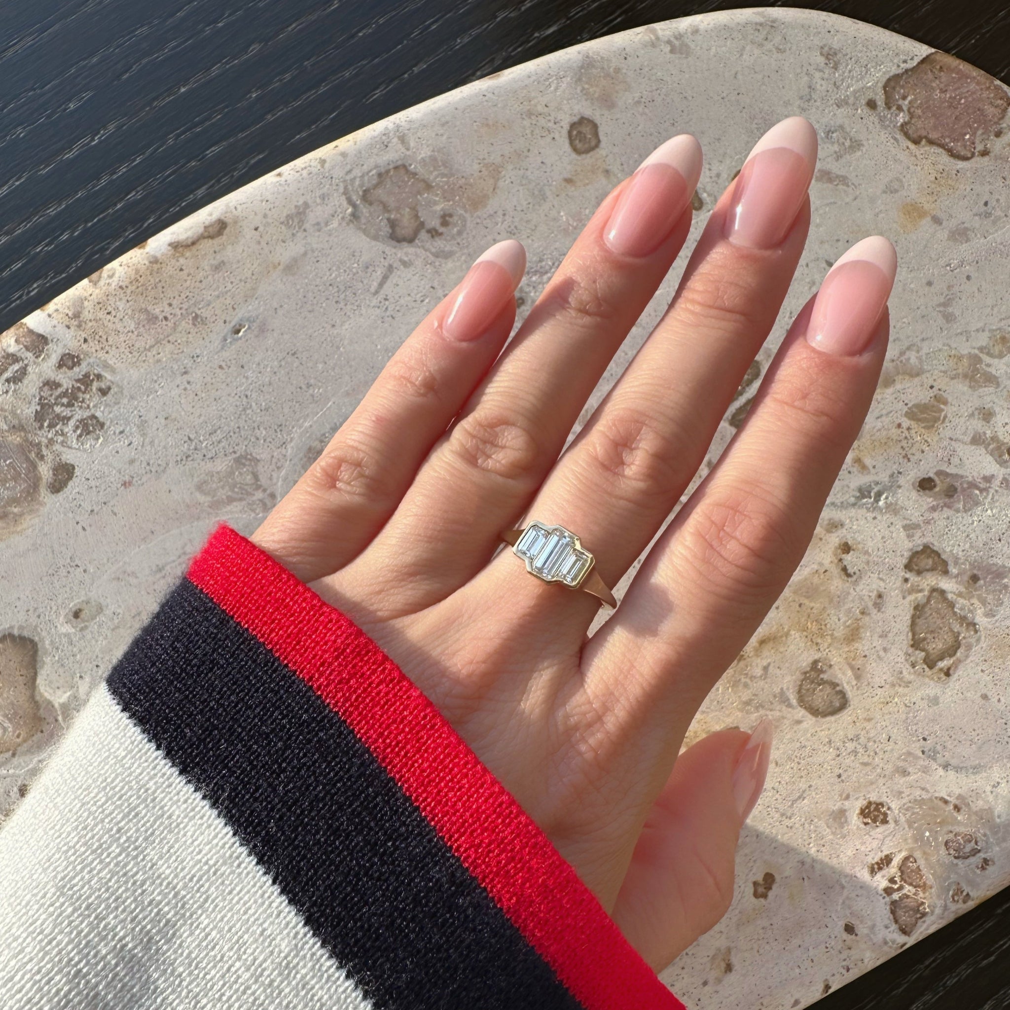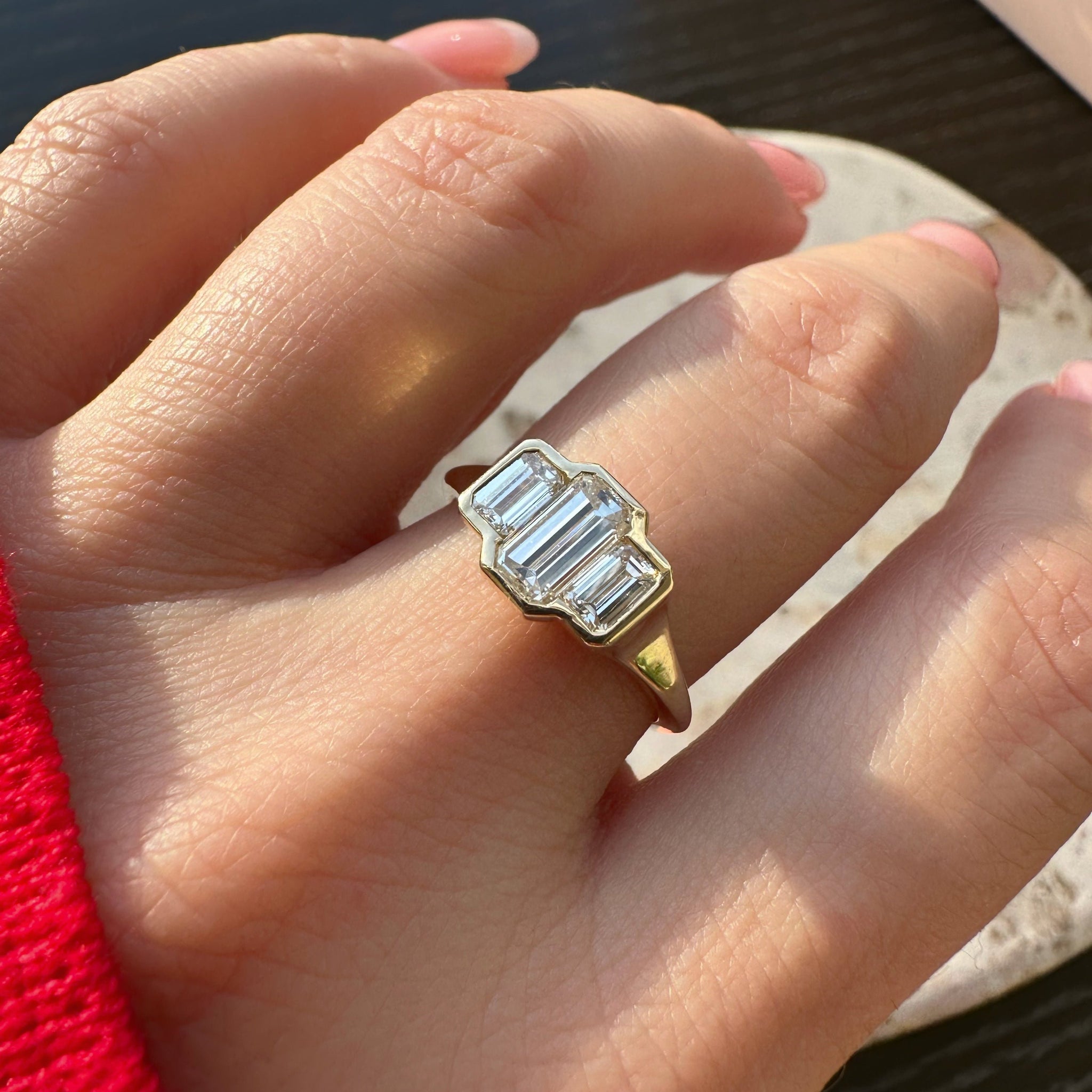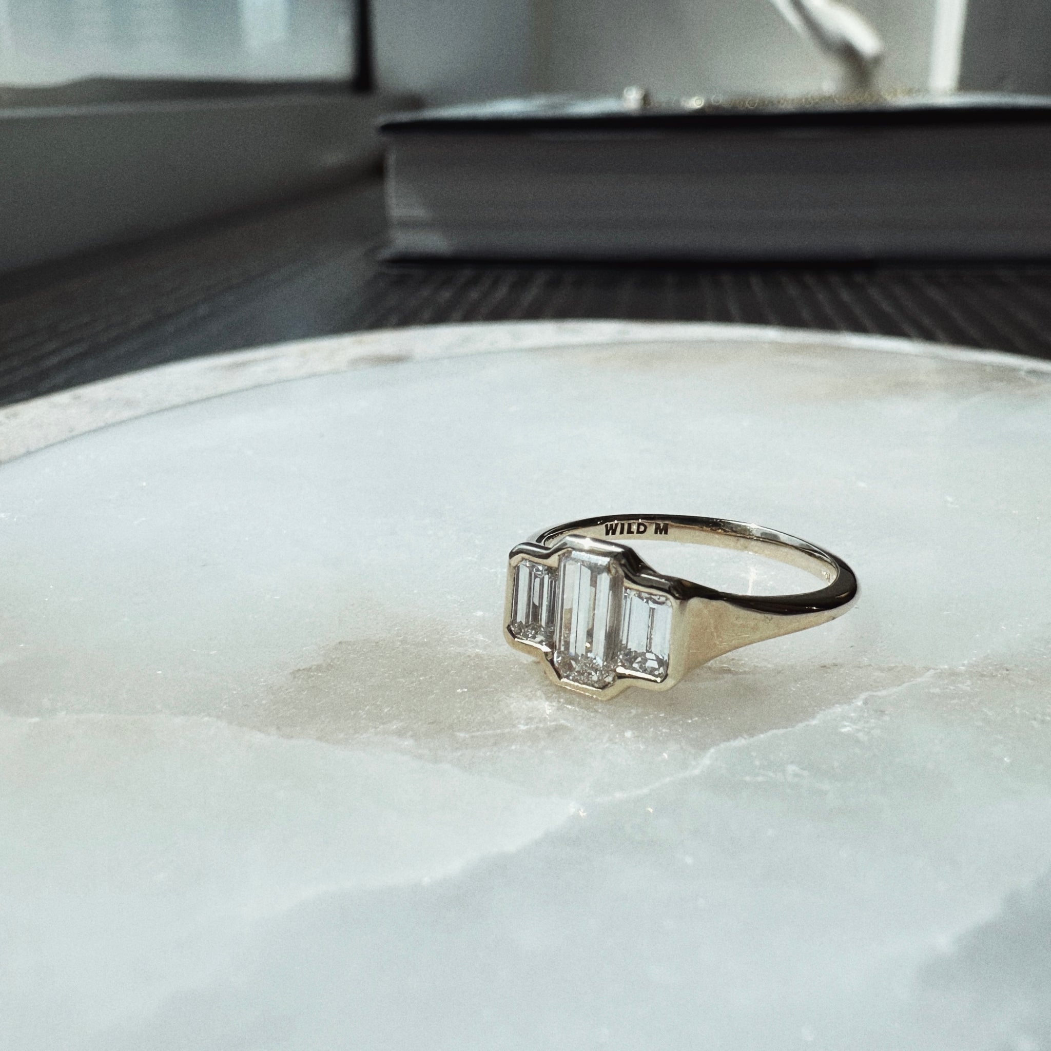 Three Stone Emerald Bezel | M