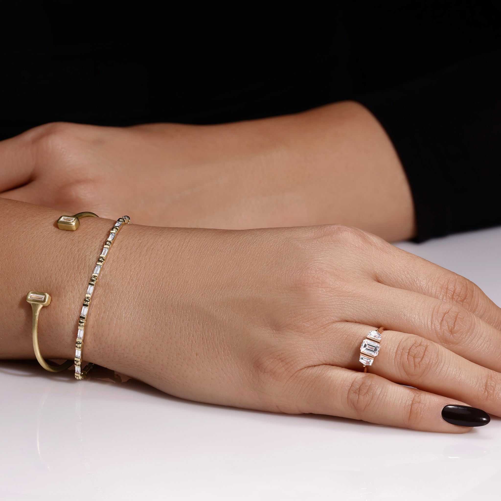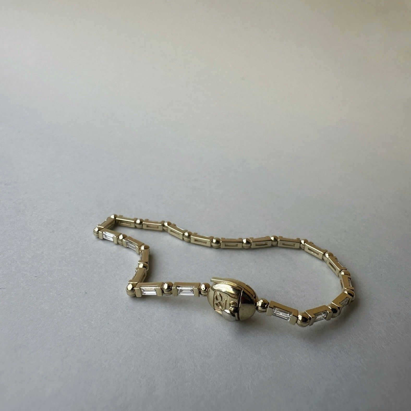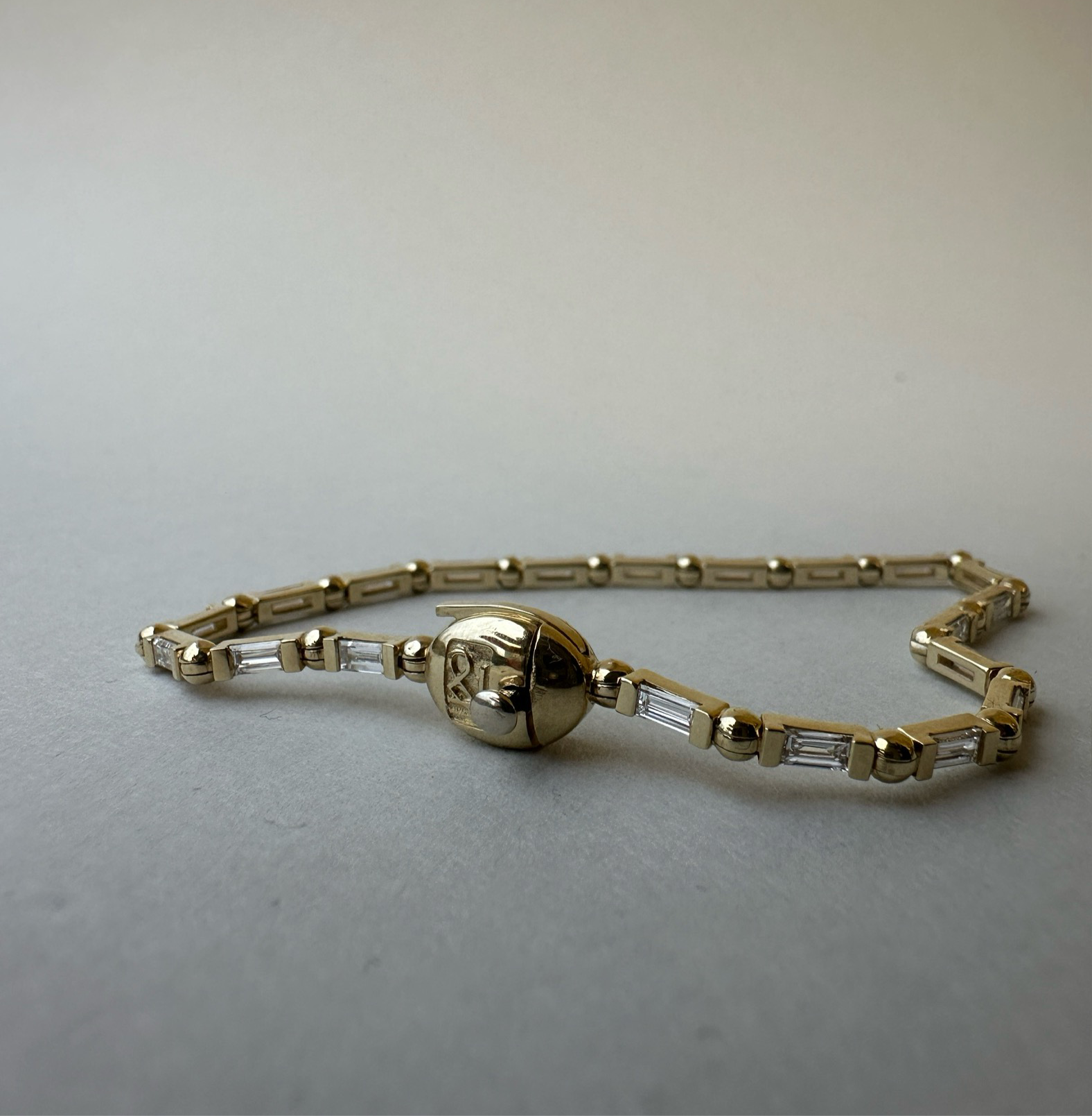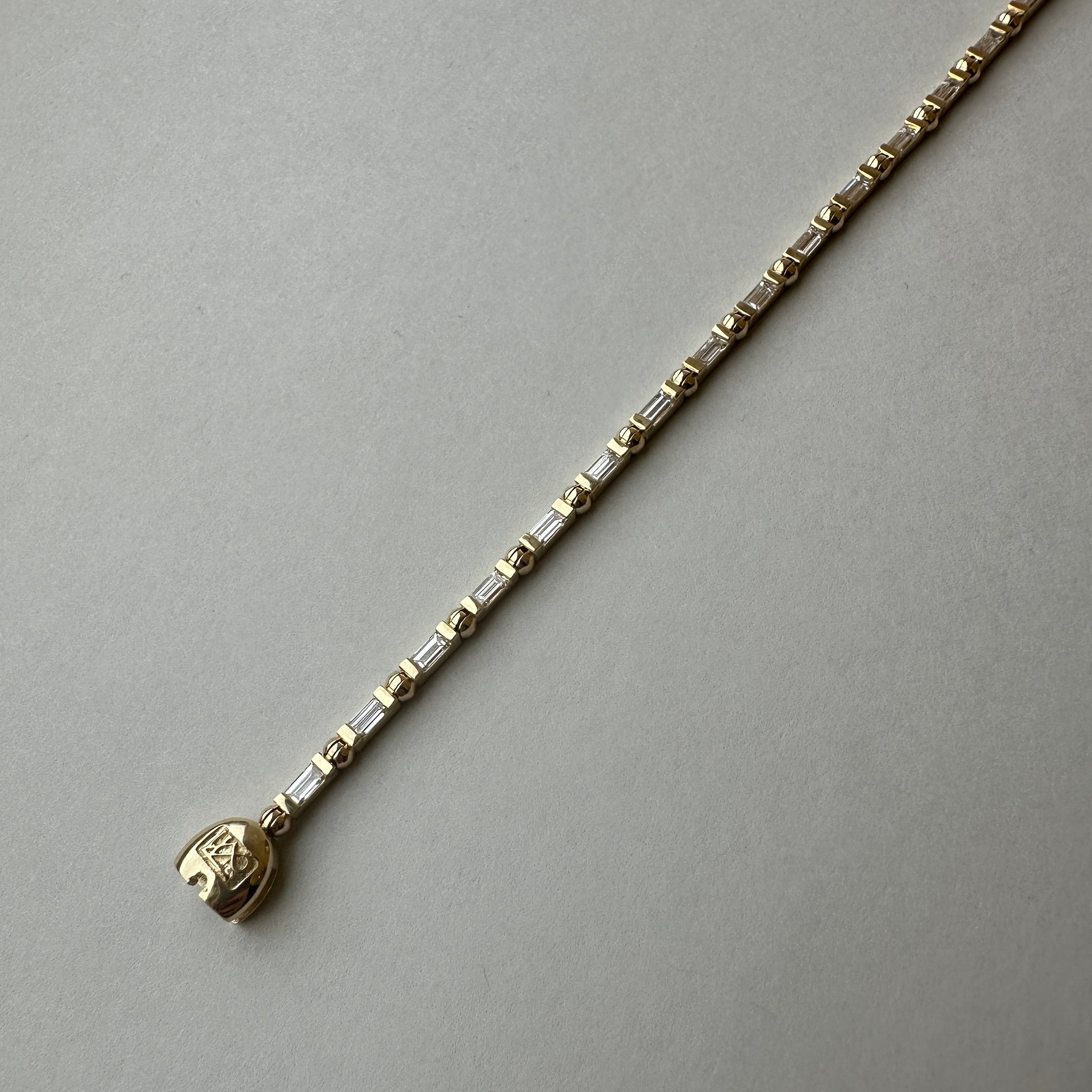 An exquisite tennis bracelet featuring baguette diamonds and elegant gold elements.